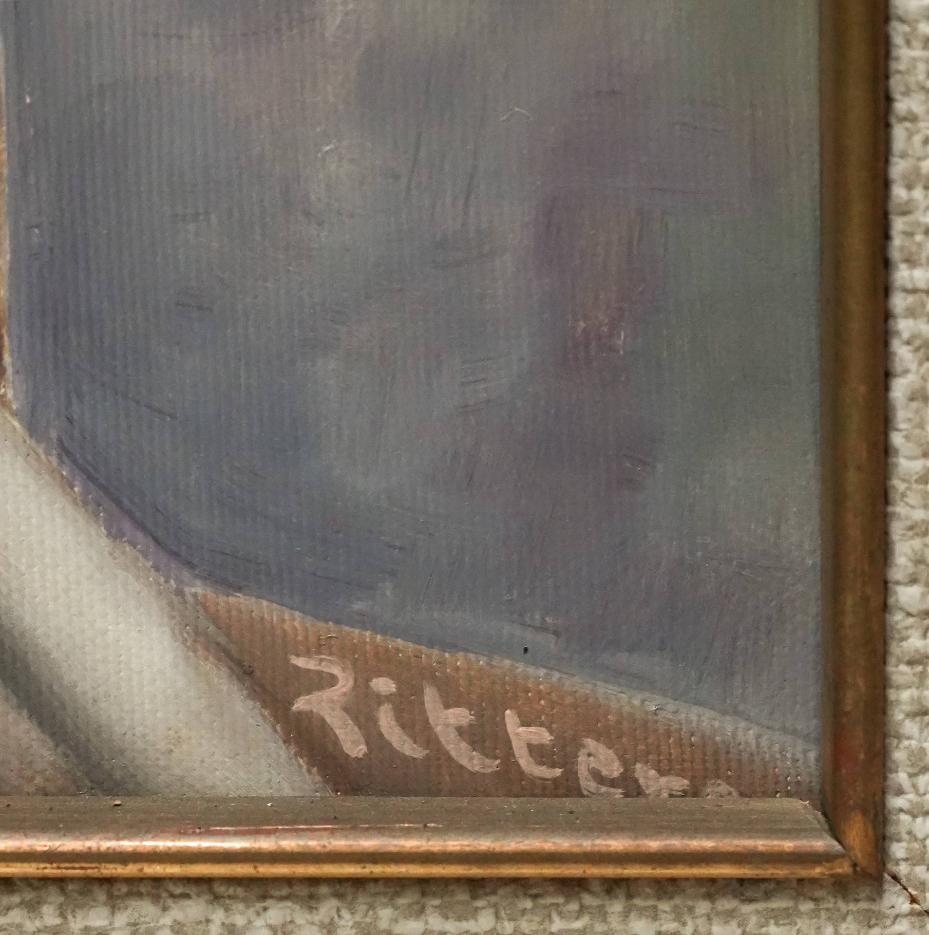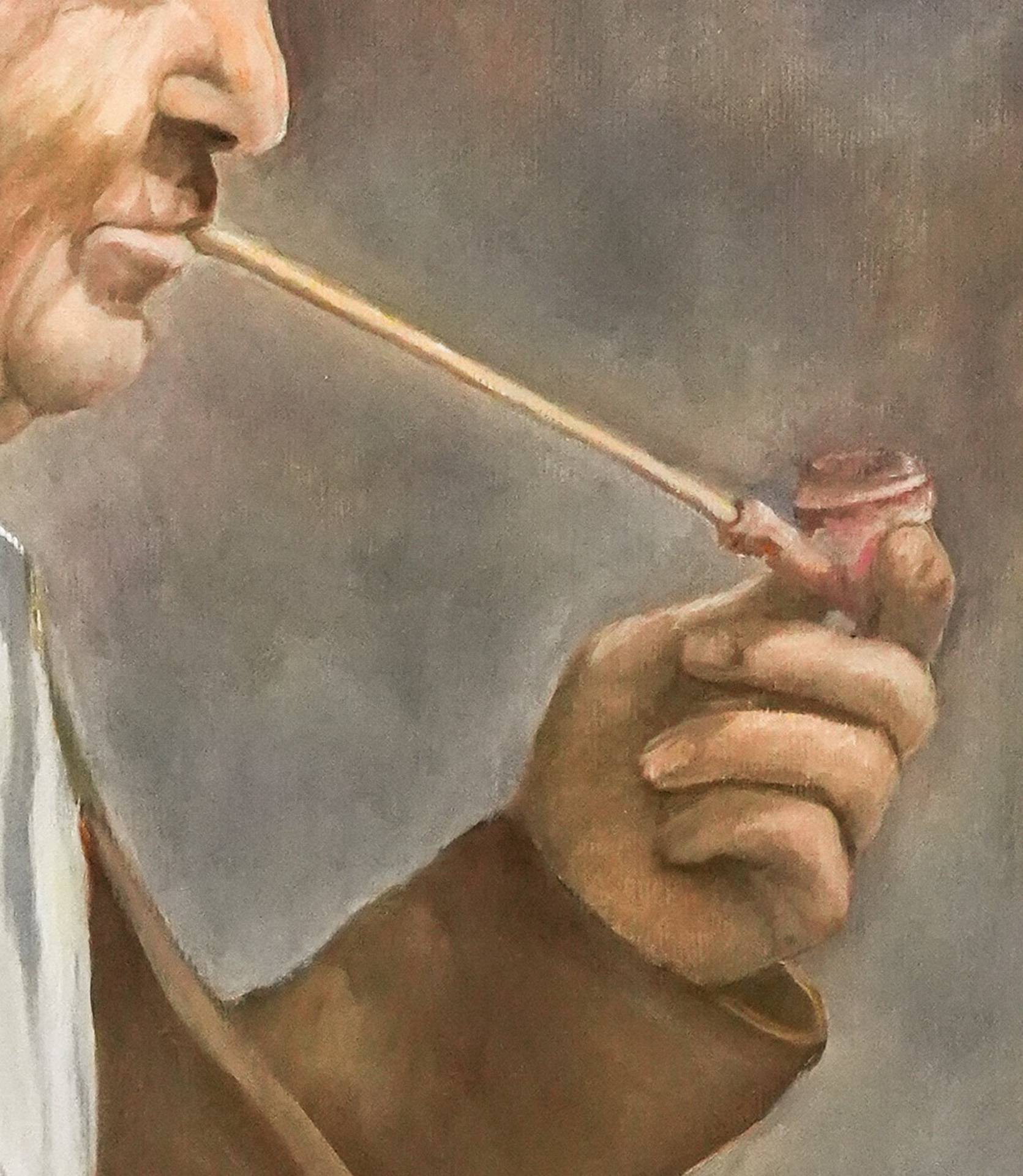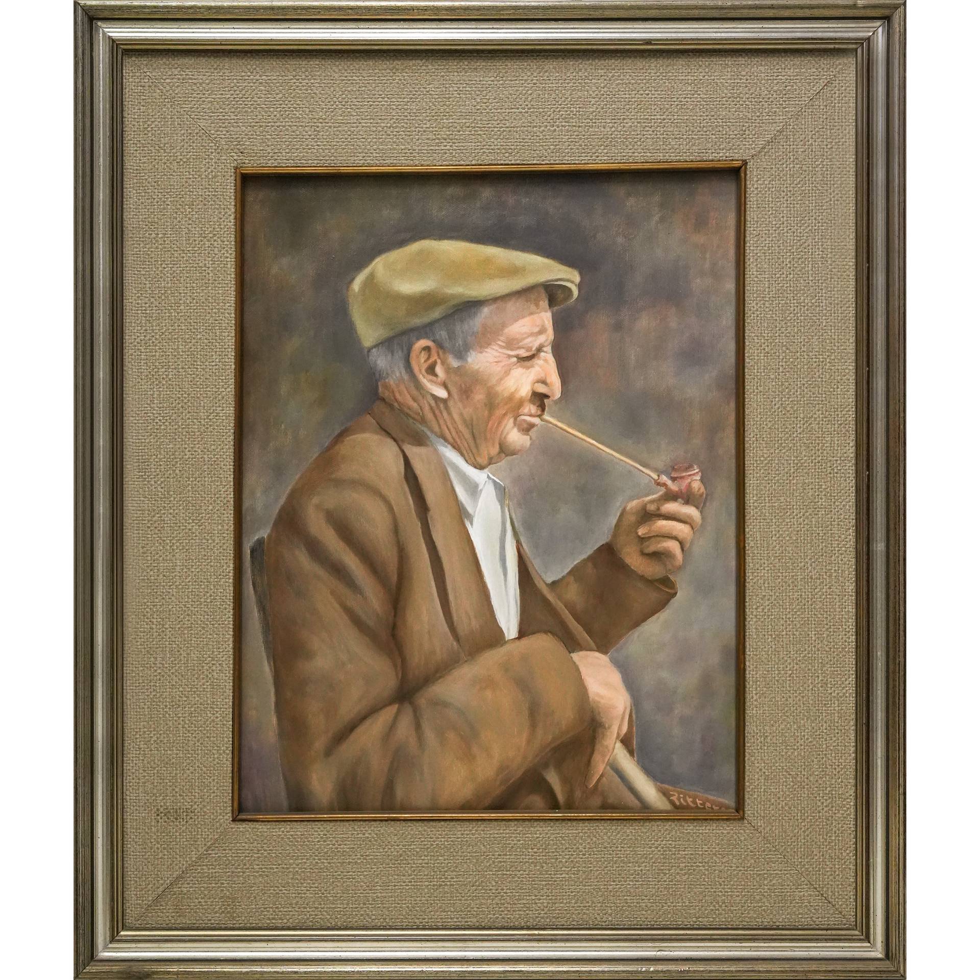 Anziano con pipa H cm 45,5x35,5- in cornice H cm 65,5x56,5 Olio su tela. Firmato in basso a destra Rittera