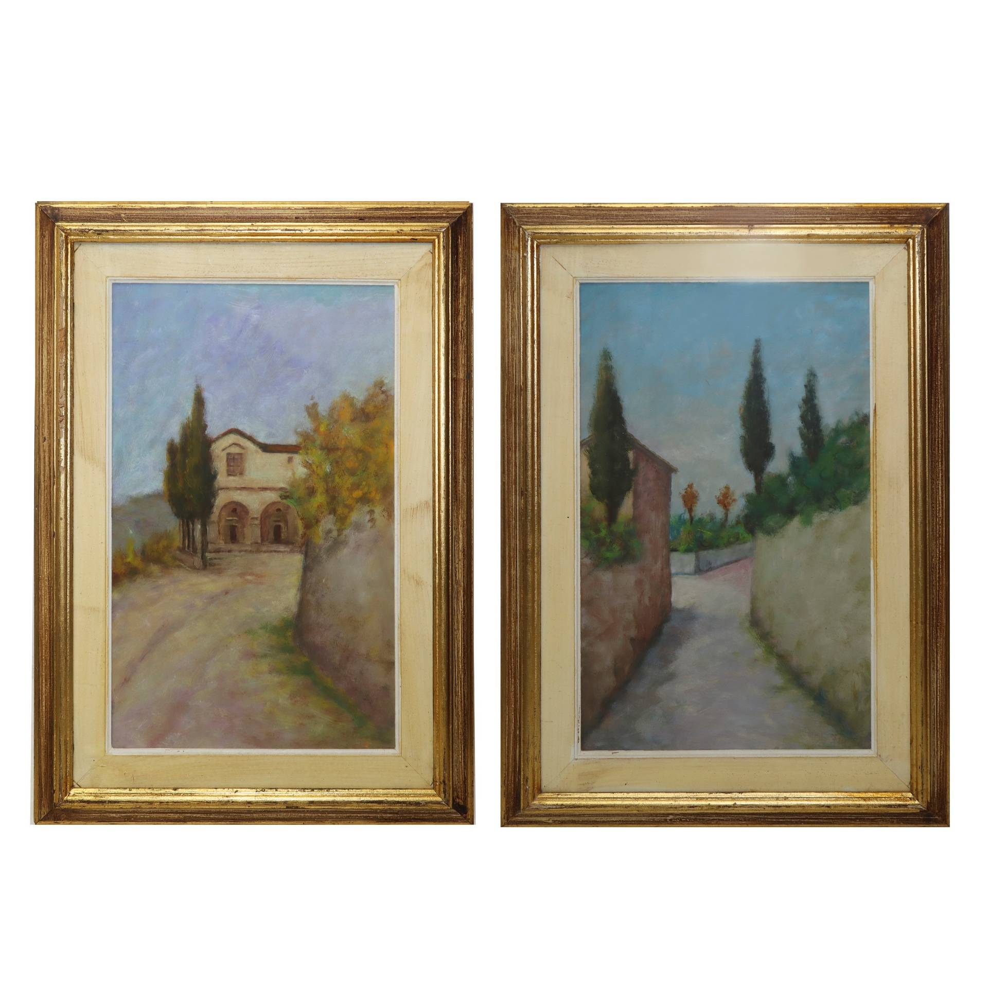 Coppia di dipinti, Strada con casa di campagna e Strada di campagna con cipressi
