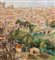 Paese arroccato H cm 50x40 - in cornice H cm 61x51 Olio su cartone telato Autore: R. Parisi. Firmato in basso a sinistra.