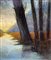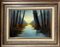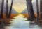 Fiume con alberi al tramonto. Cm 40x60, in cornice cm 67x87. olio su tavola Firmato in basso a destra con pittogramma e datato ‘38