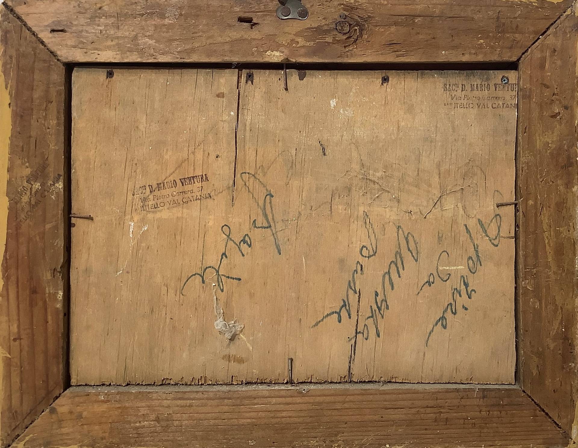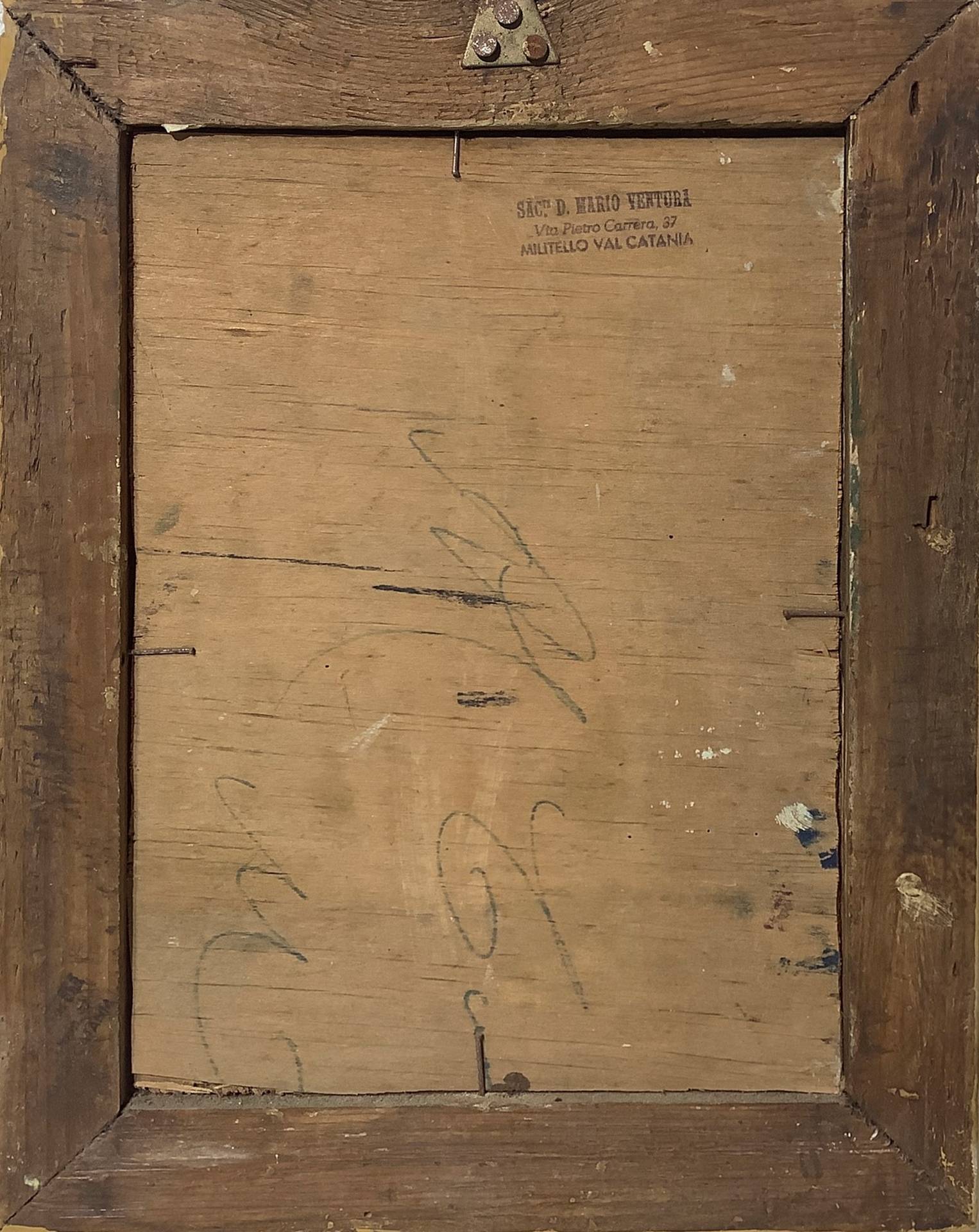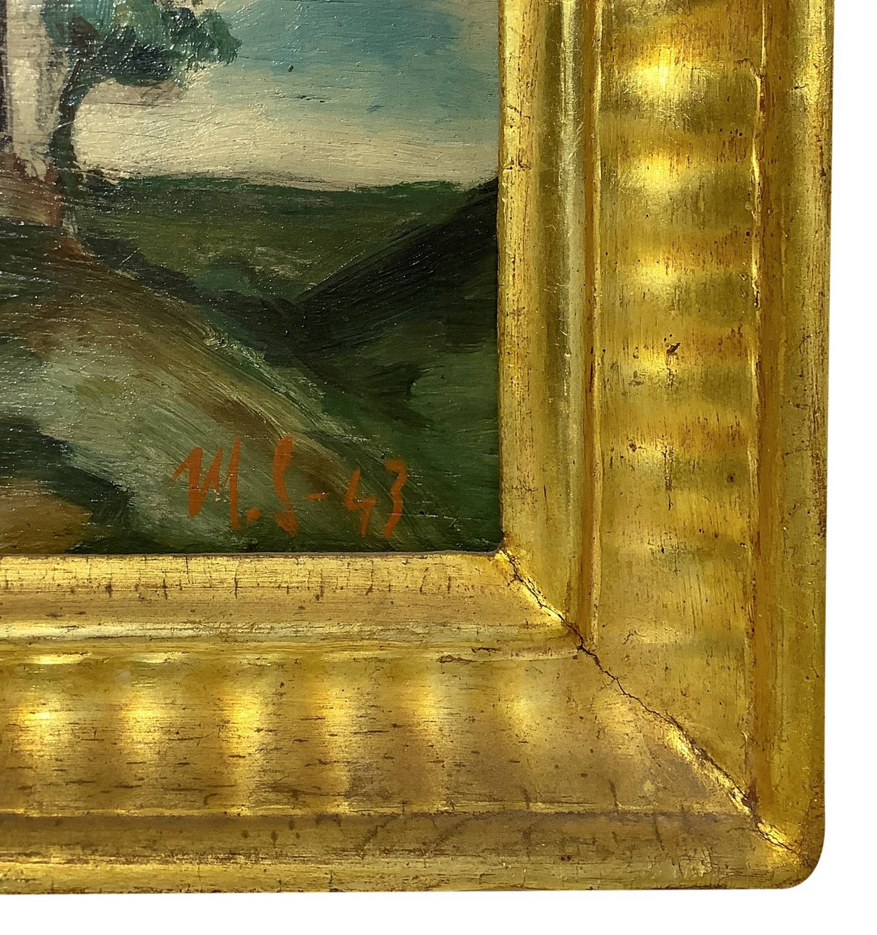 Santo Marino (Militello val di Catania 1924-1991) - Quattro dipinti paesaggi in cornice dorata, 1943 14x20, in cornice 21x26,4 Olio su tavoletta Siglati M.S.; due verticali e due orizzontali; Sul retro timbro del Sacerdote Mario Ventura Militello Val di Catania.