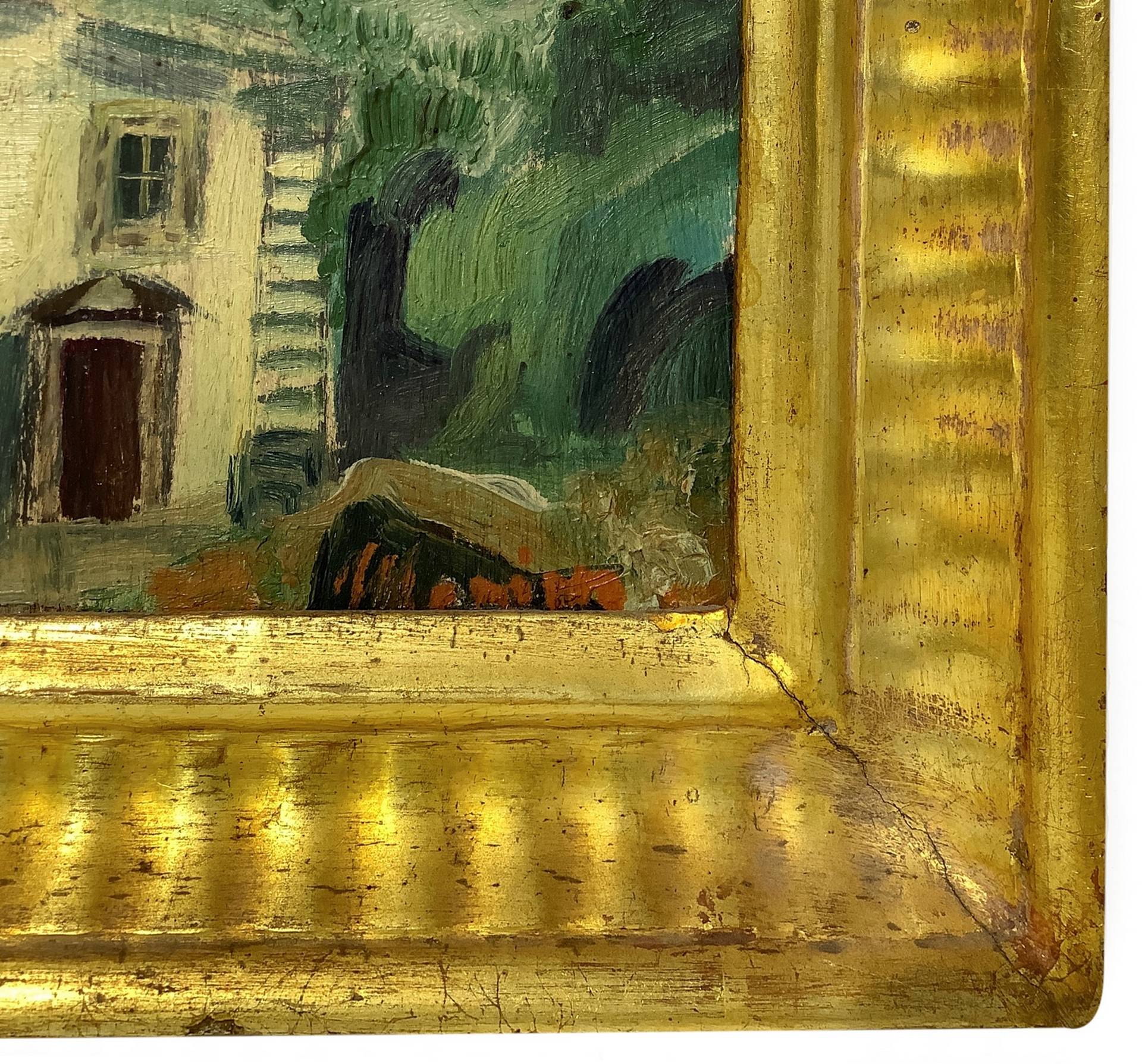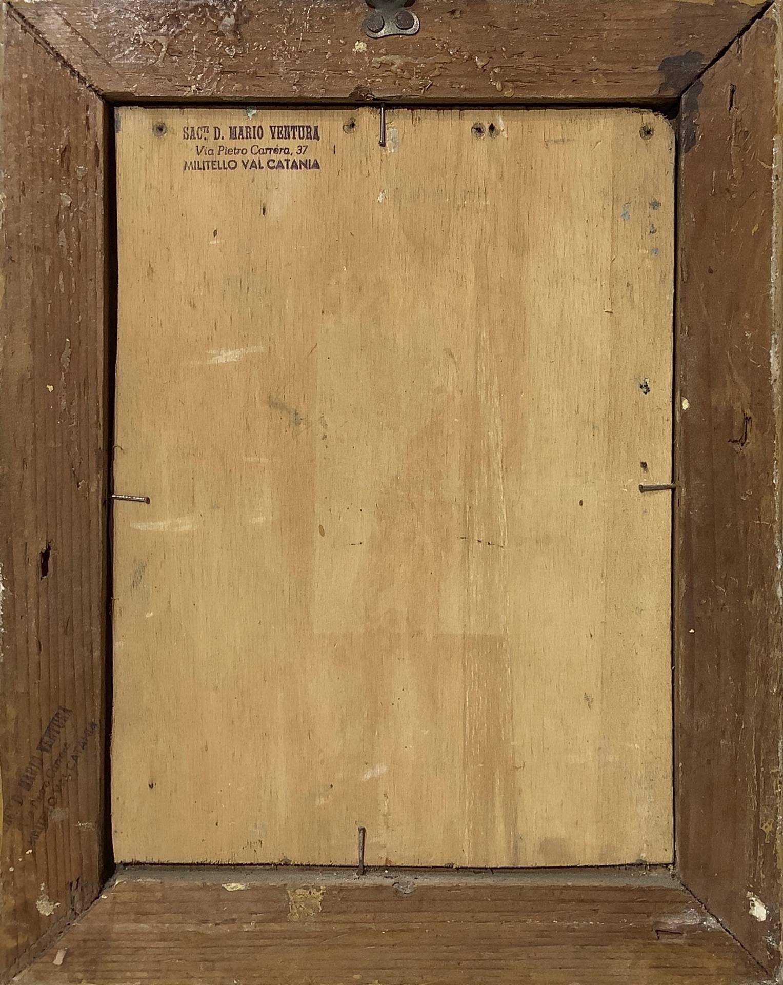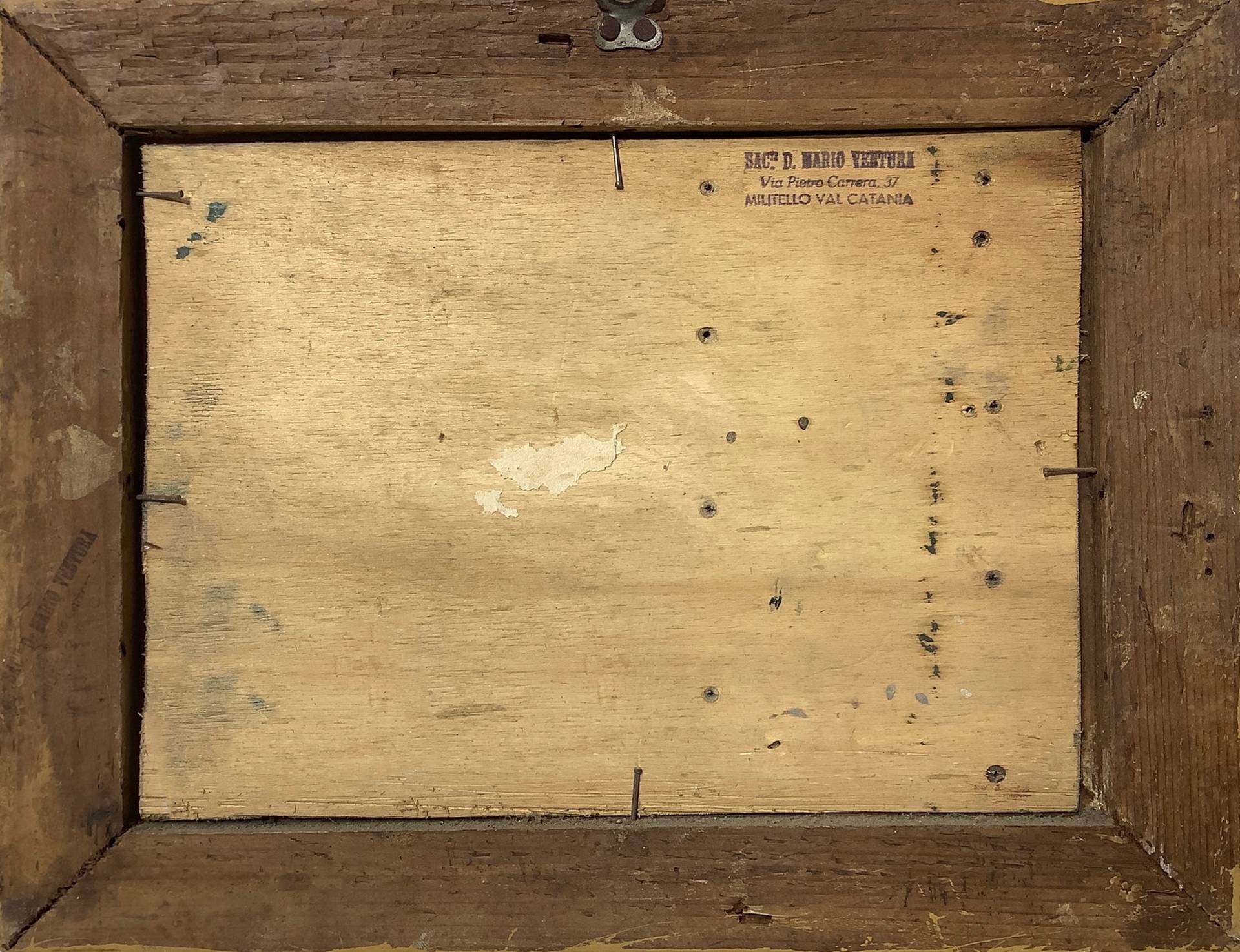 Santo Marino (Militello val di Catania 1924-1991) - Quattro dipinti paesaggi in cornice dorata, 1943 14x20, in cornice 21x26,4 Olio su tavoletta Siglati M.S.; due verticali e due orizzontali; Sul retro timbro del Sacerdote Mario Ventura Militello Val di Catania.