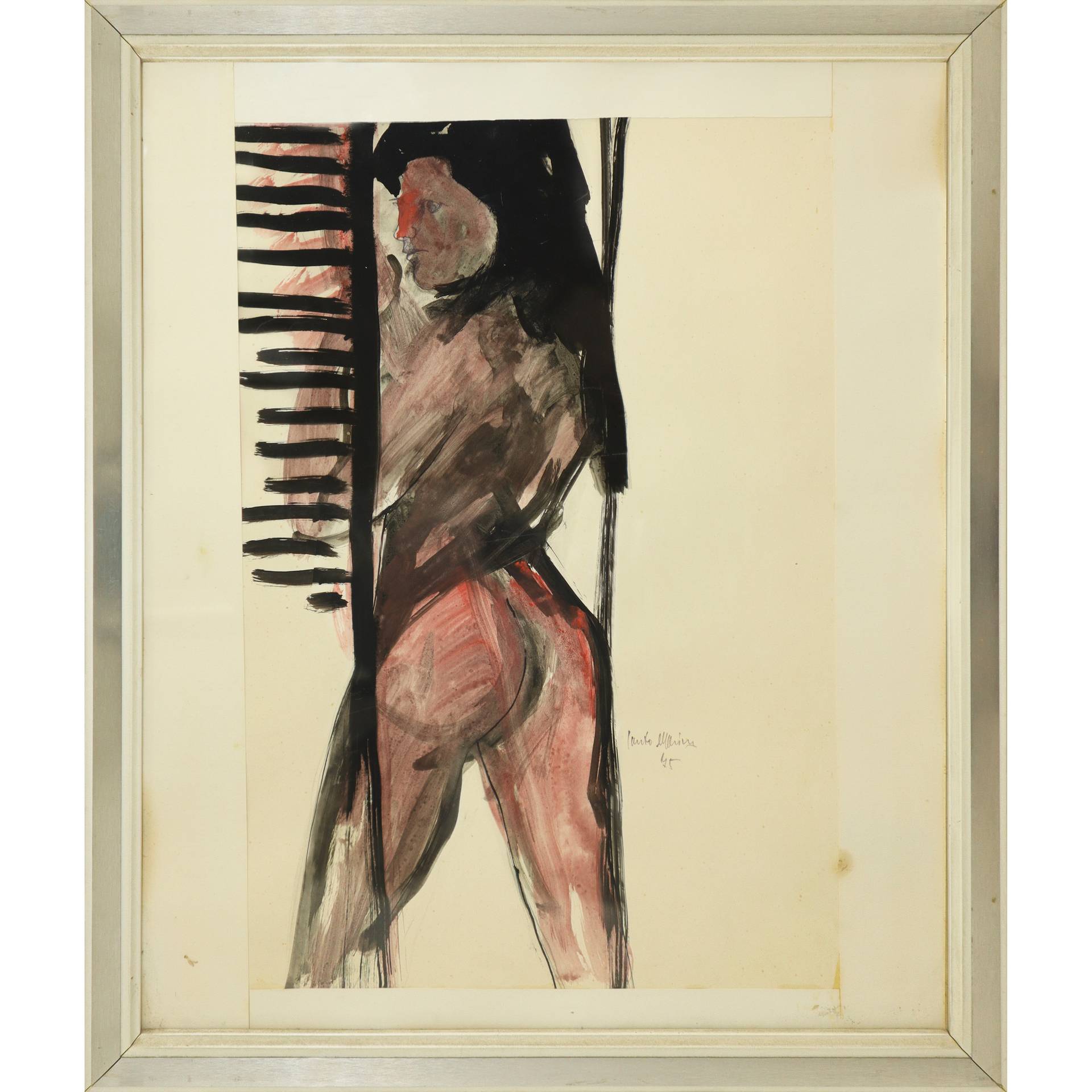 Santo Marino (Militello val di Catania 1924-1991) - Nudo di donna in piedi, 1975 H cm 44x30 - in cornice H cm 55x46 Tecnica mista Firmato sul lato destro e datato