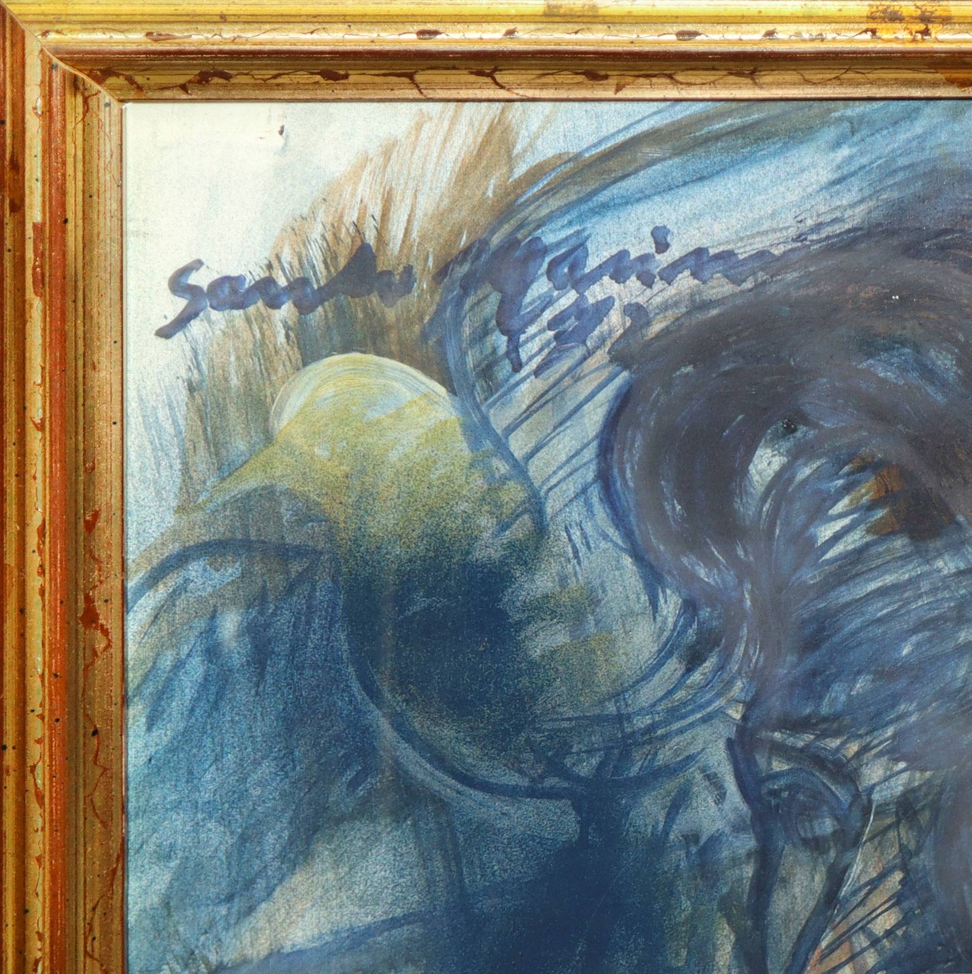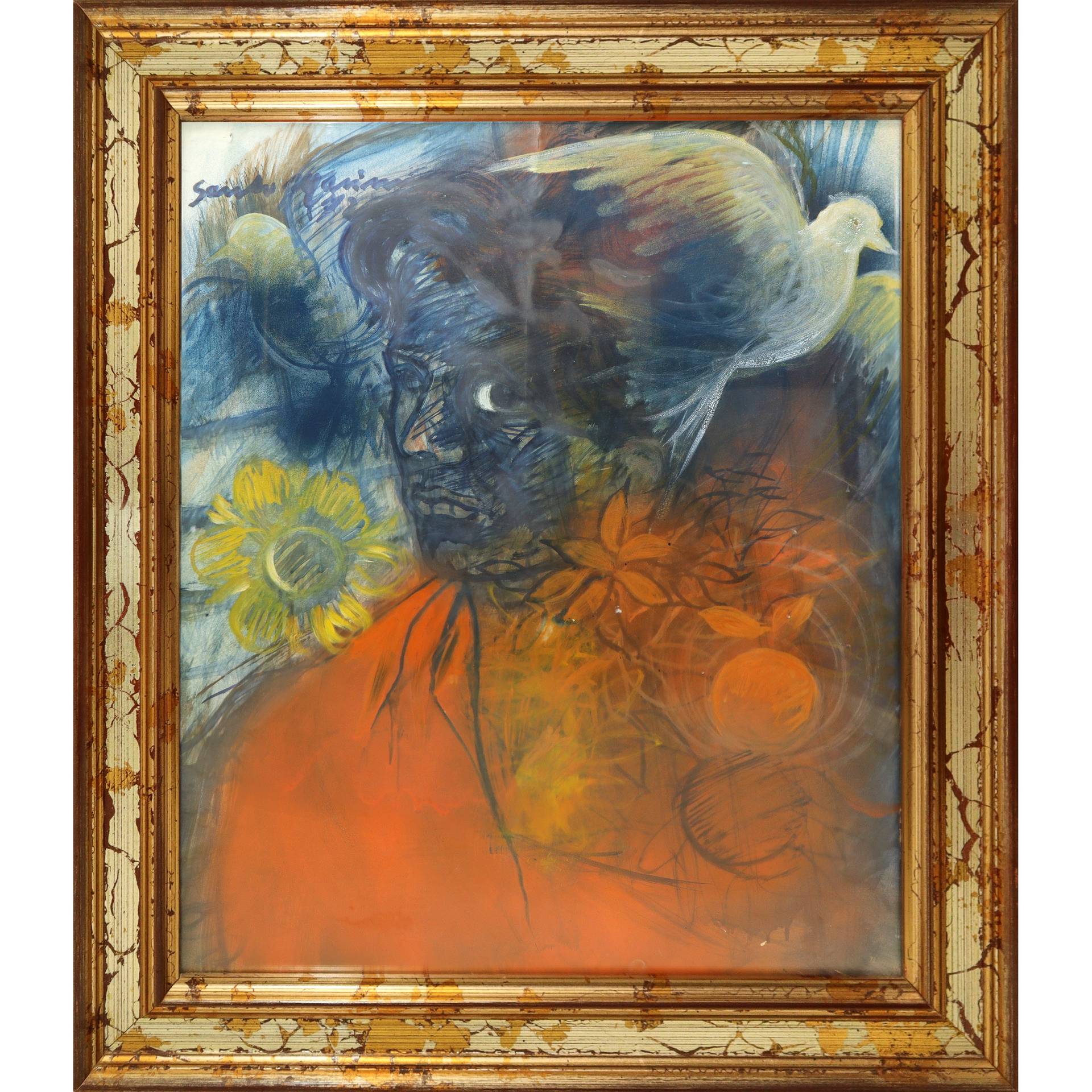 Santo Marino (Militello val di Catania 1924-1991) - Volto con colomba H cm 60x50 - in cornice H cm 70x69 Acrilici su cartoncino Firmato in alto a sinistra