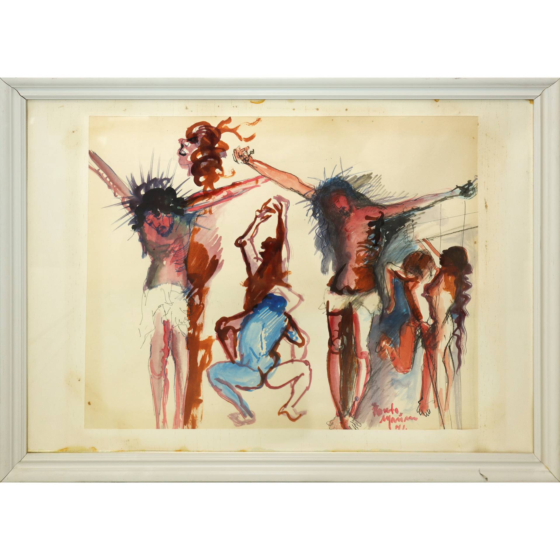 Santo Marino (Militello val di Catania 1924-1991) - Crocifissione H cm 44x54 - in cornice H cm 56x76 Tecnica mista Firmato in basso a destra