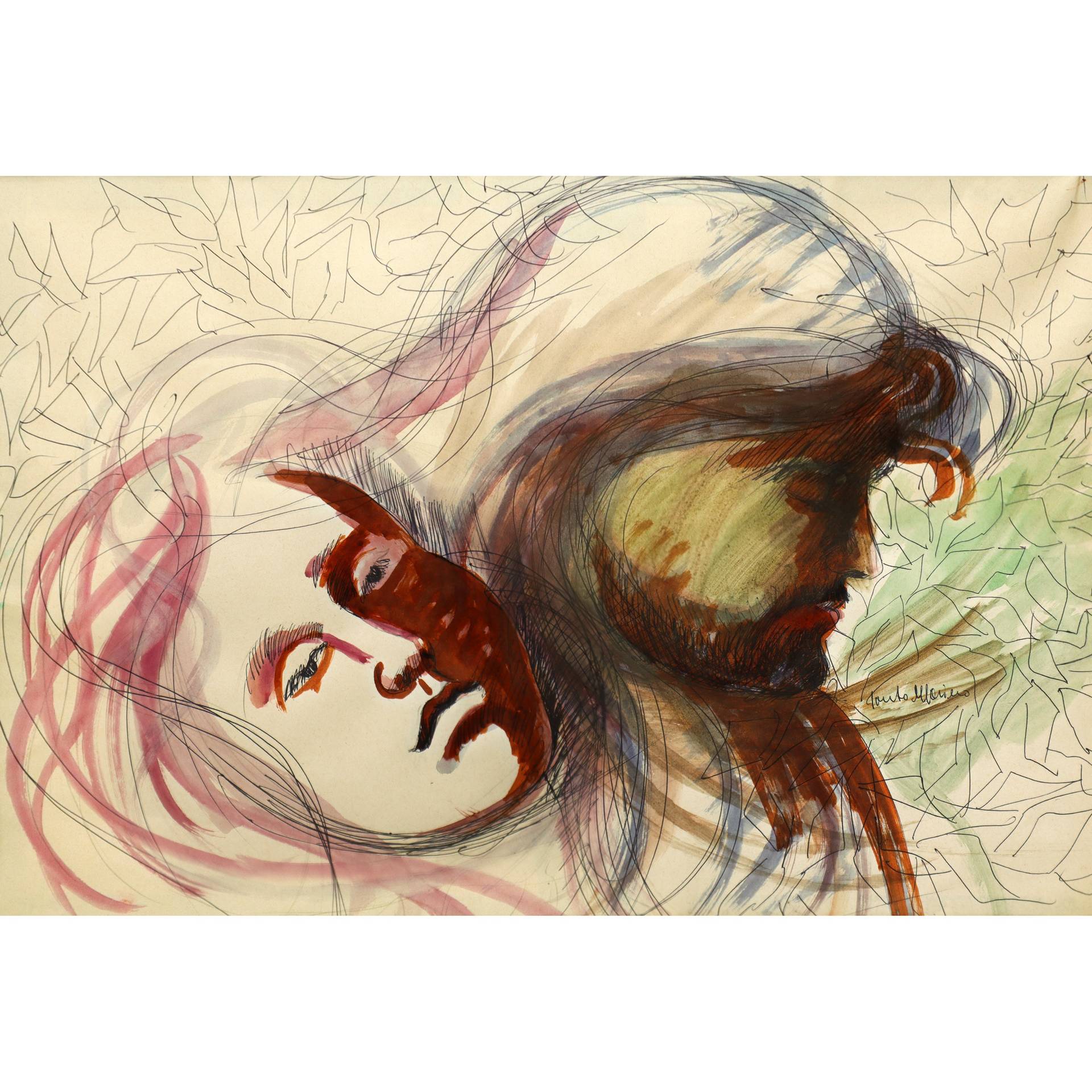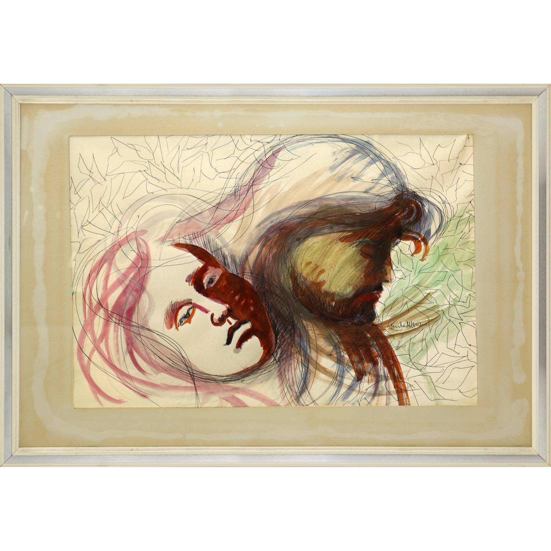 Santo Marino (Militello val di Catania 1924-1991) - Volto di uomo e donna H cm 38x55 - in cornice H cm 54x74 Tecnica mista su cartoncino Firmata in basso a destra