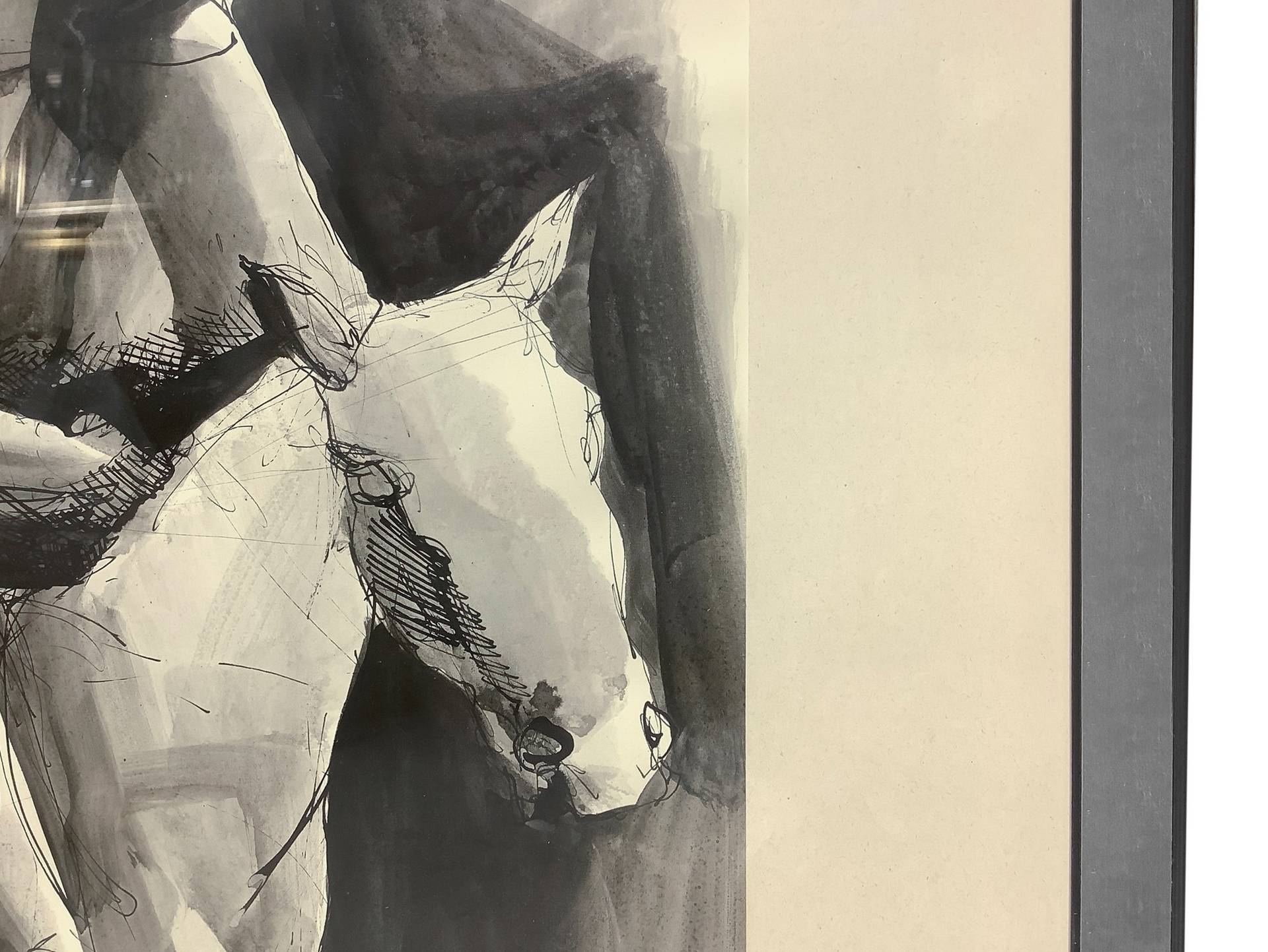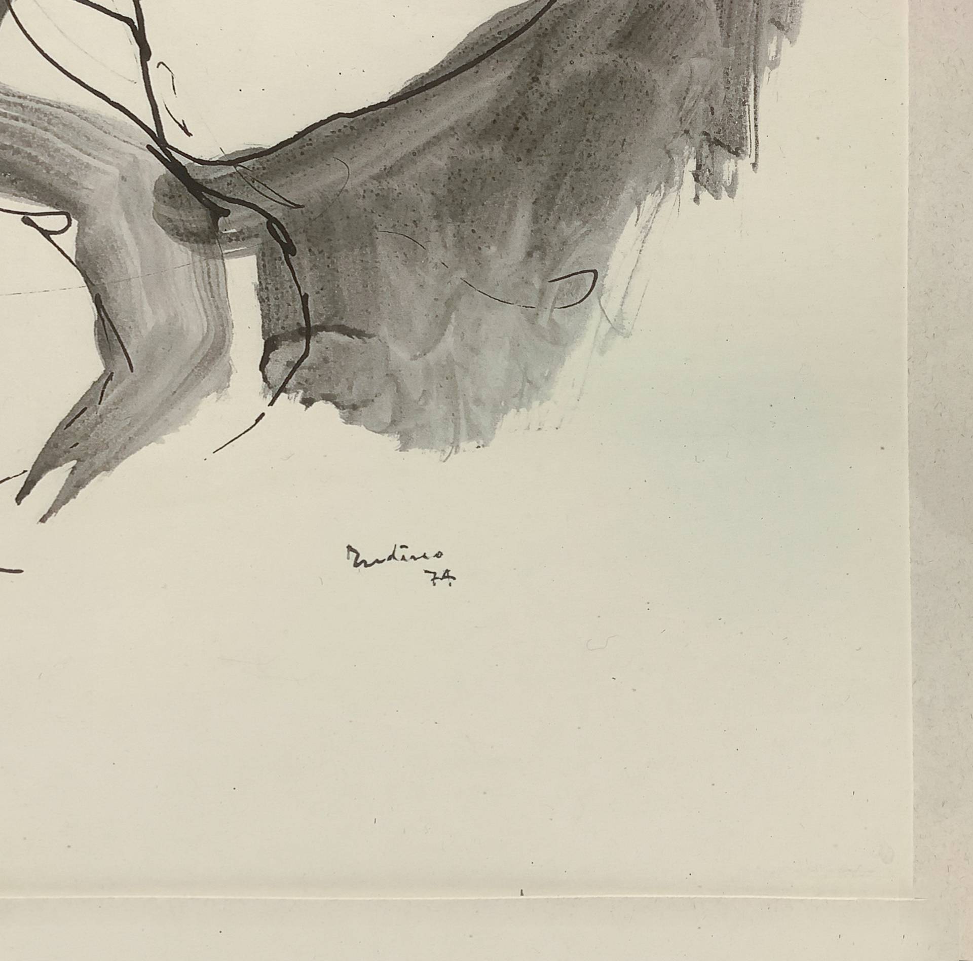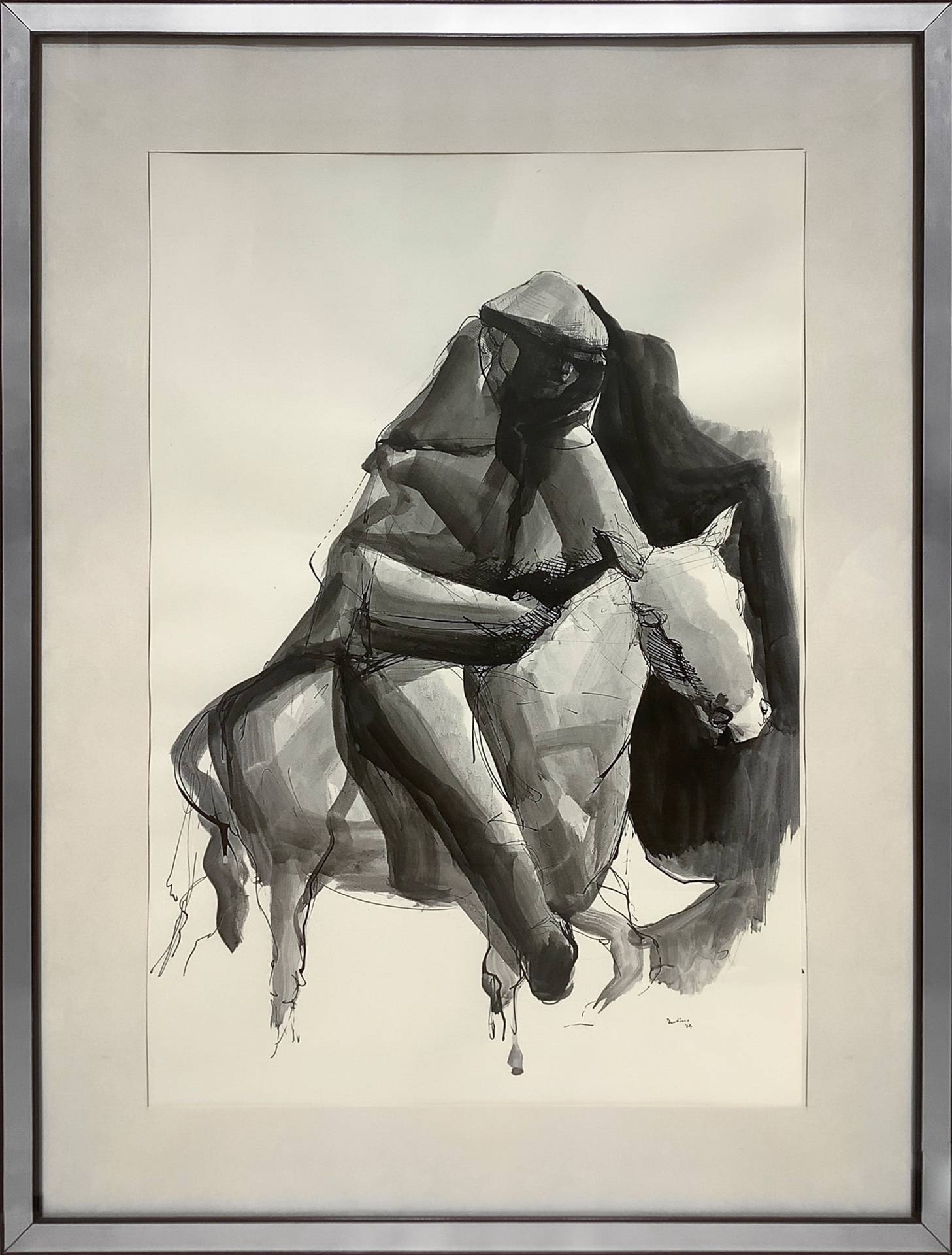 Domenico Tudisco (Catania 1919-Catania 2013) - Uomo su asino, 1974 cm 65x45 , in cornice 84x64 China e inchiostro su carta Firmato in basso a destra.