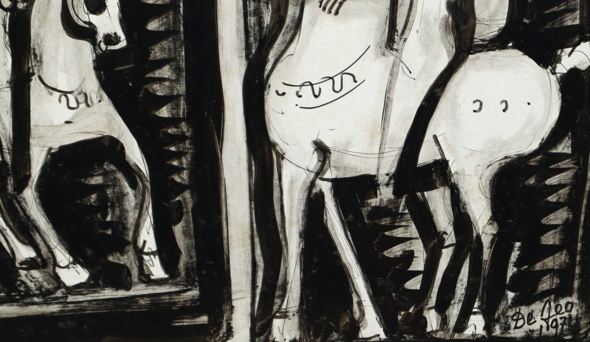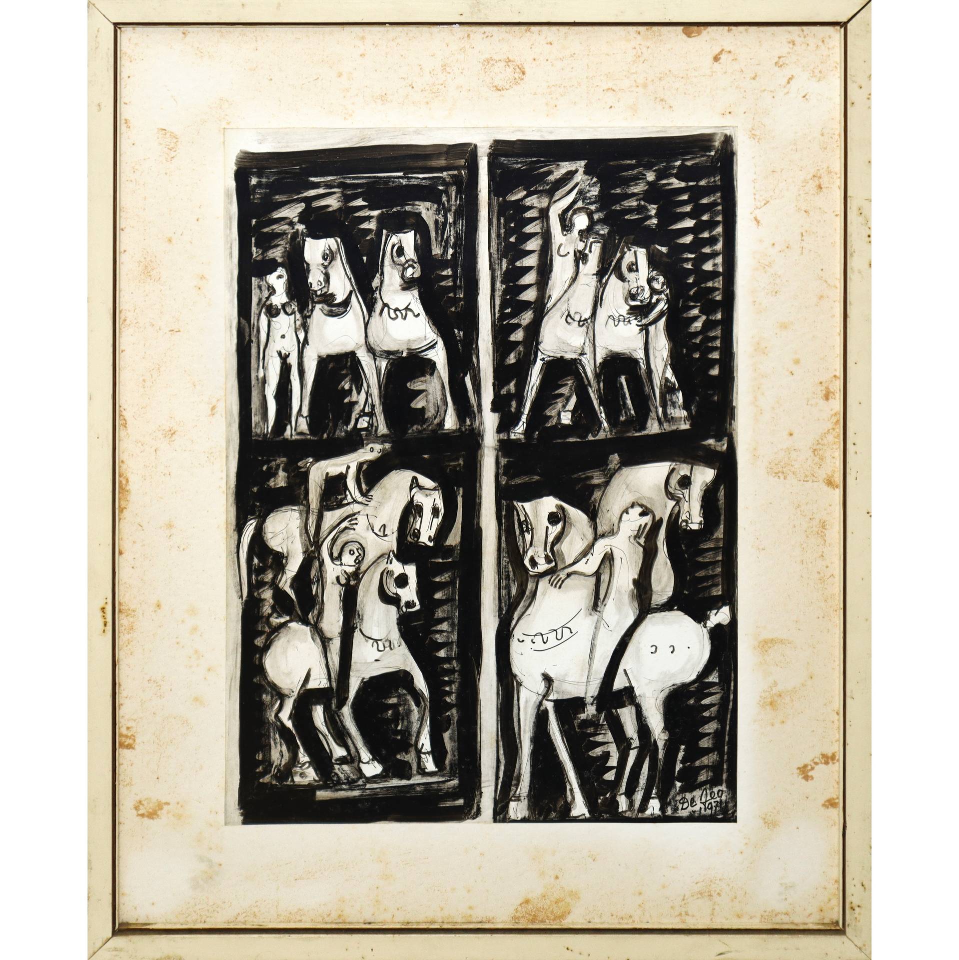 Giuseppe Defeo (1914-2000) - Uomini e cavalli, 1971 H cm 34x24 - in cornice H cm 47x37 Firmato e datato in basso a destraFirmato e datato in basso a destra