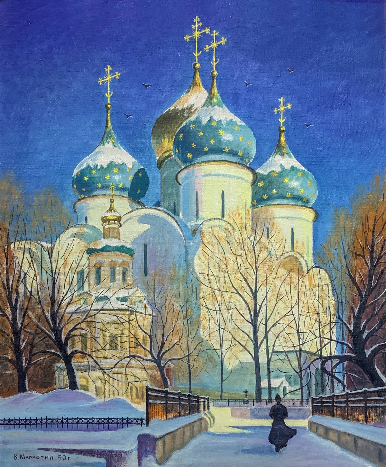 Monastero Russo 70x65 cm, in cornice 100x86 cm Dipinto ad olio su tela Firmato in basso a sinistra e sul retro e datato 1905.