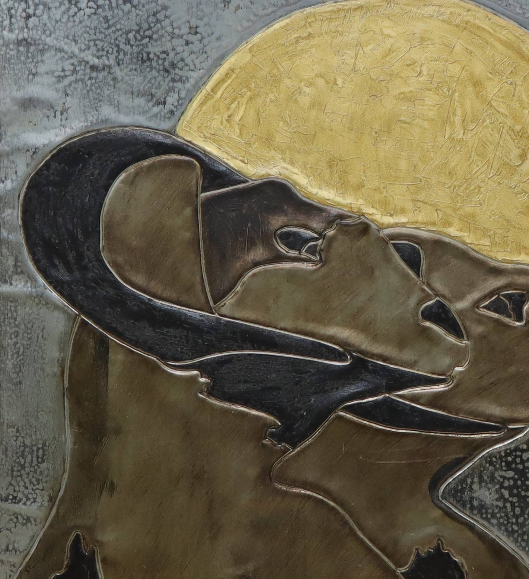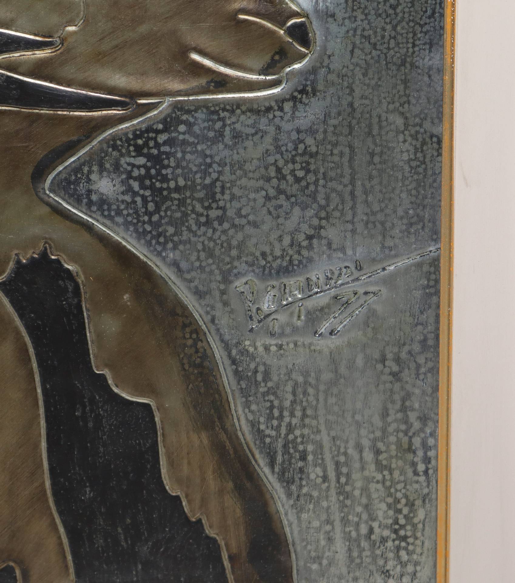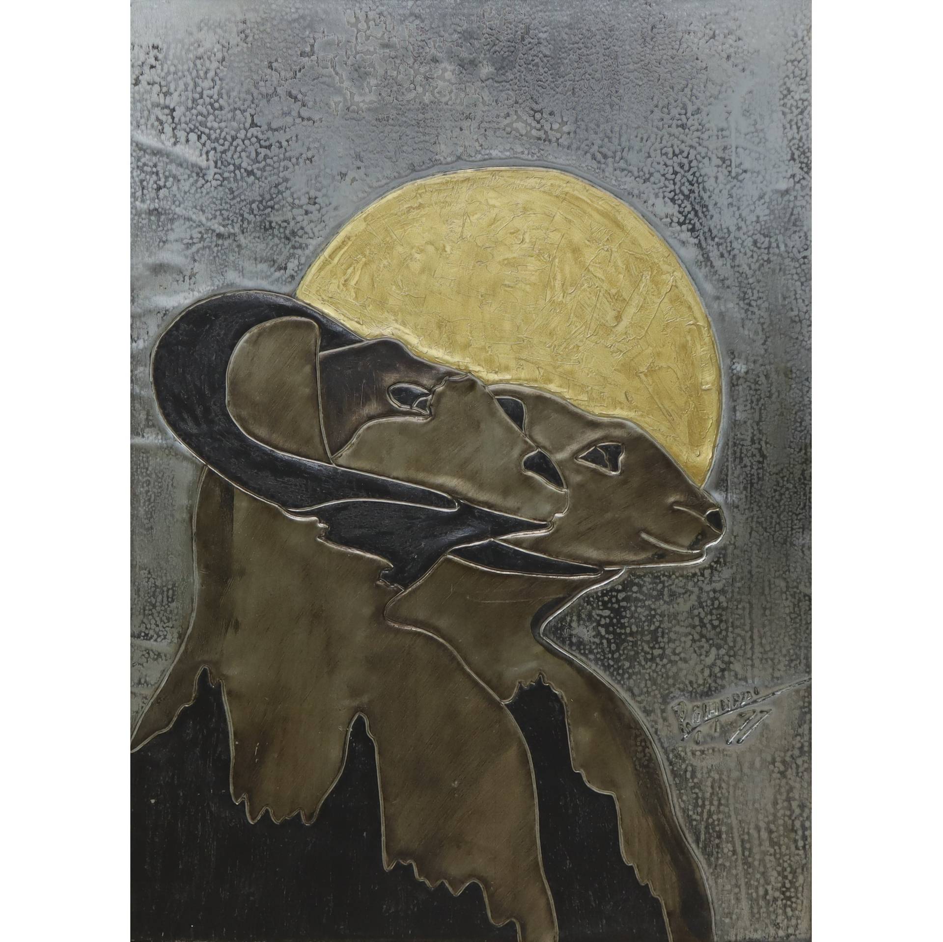 Piero Gianuzzi (1937-1996) - Coppia di arieti, 1977 Cm 78(h) x 58 in cornice cm 89(h) x 69 Olio su zinco Firmato in basso a destra e datato '77