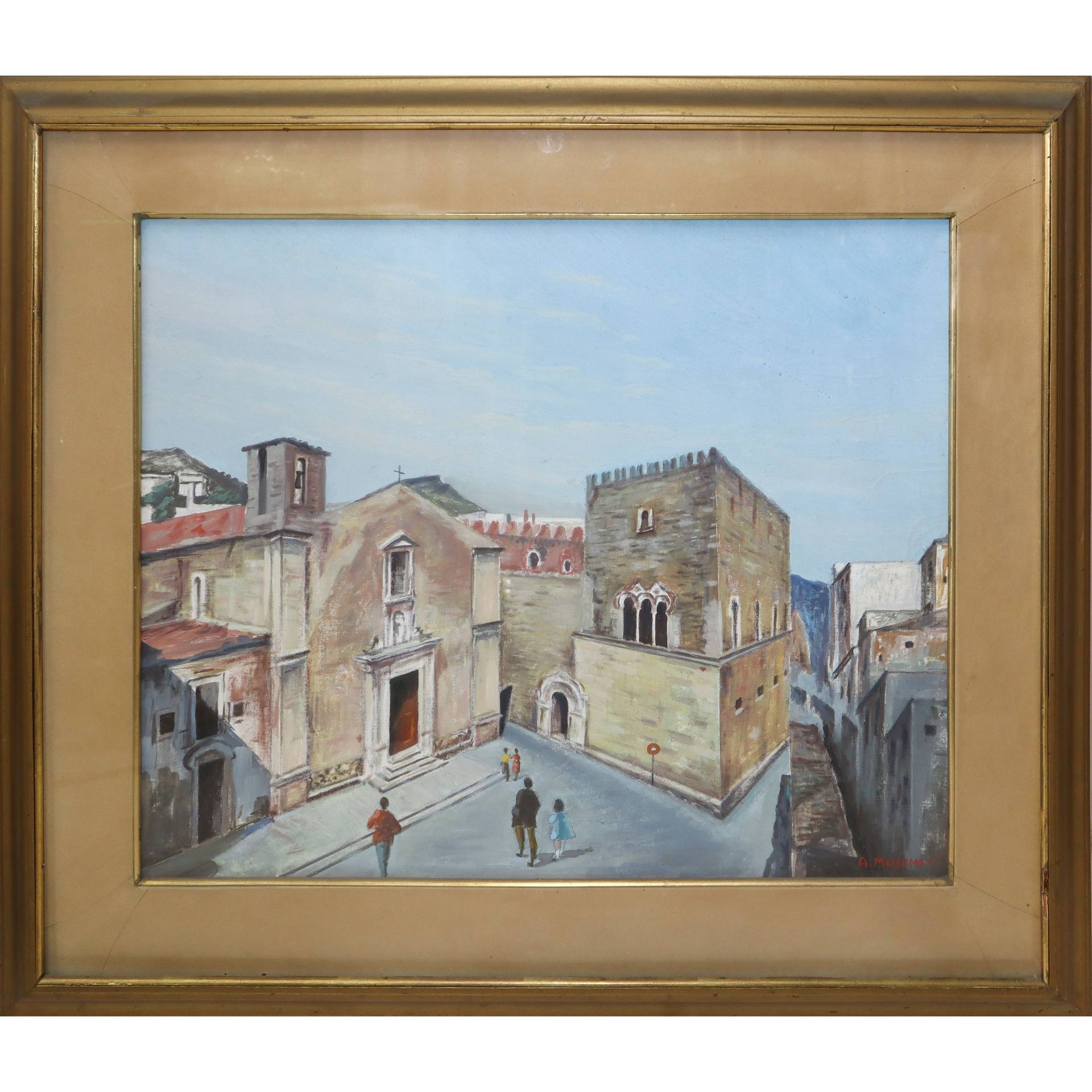 Palazzo Corvaia, Taormina Cm 50x60 in cornice 69x79 Olio su tela cartonata Firmato in basso a destra A.Musumeci