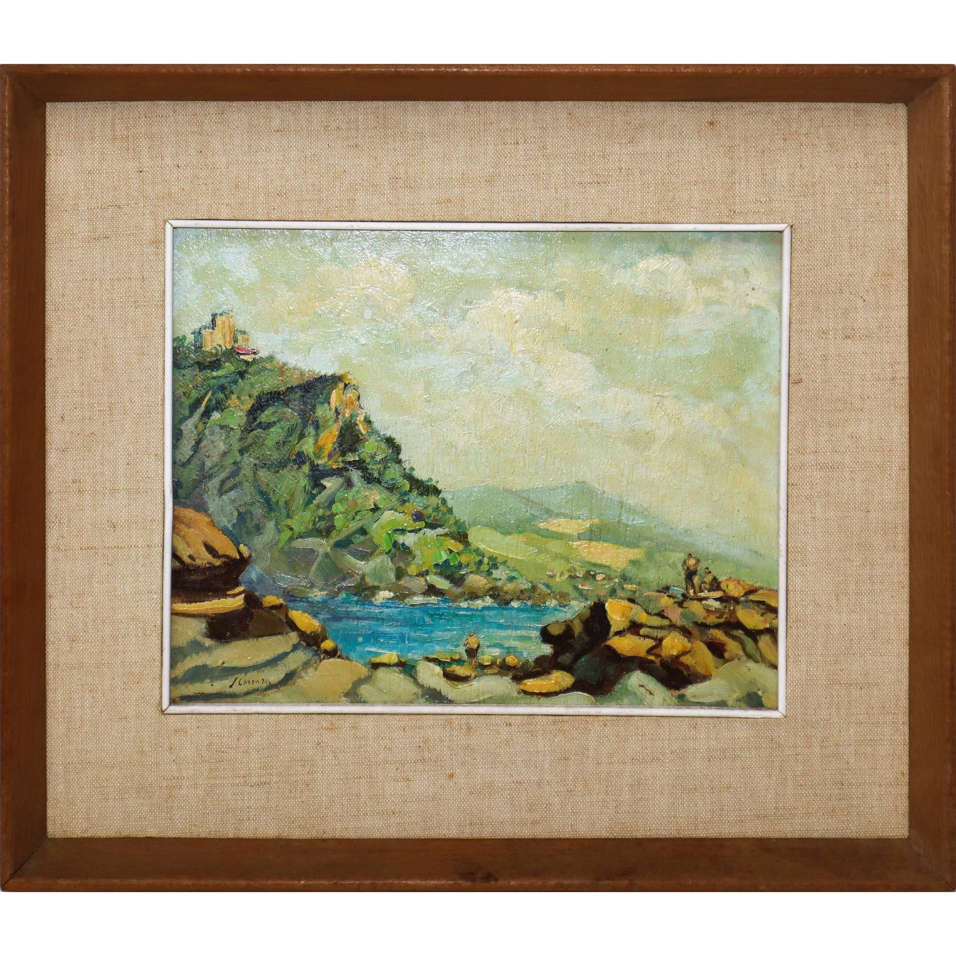 Castel Romito cm 21x25 in cornice cm 32x37 Olio su compensato Firmato in basso a sinistra e sul retro