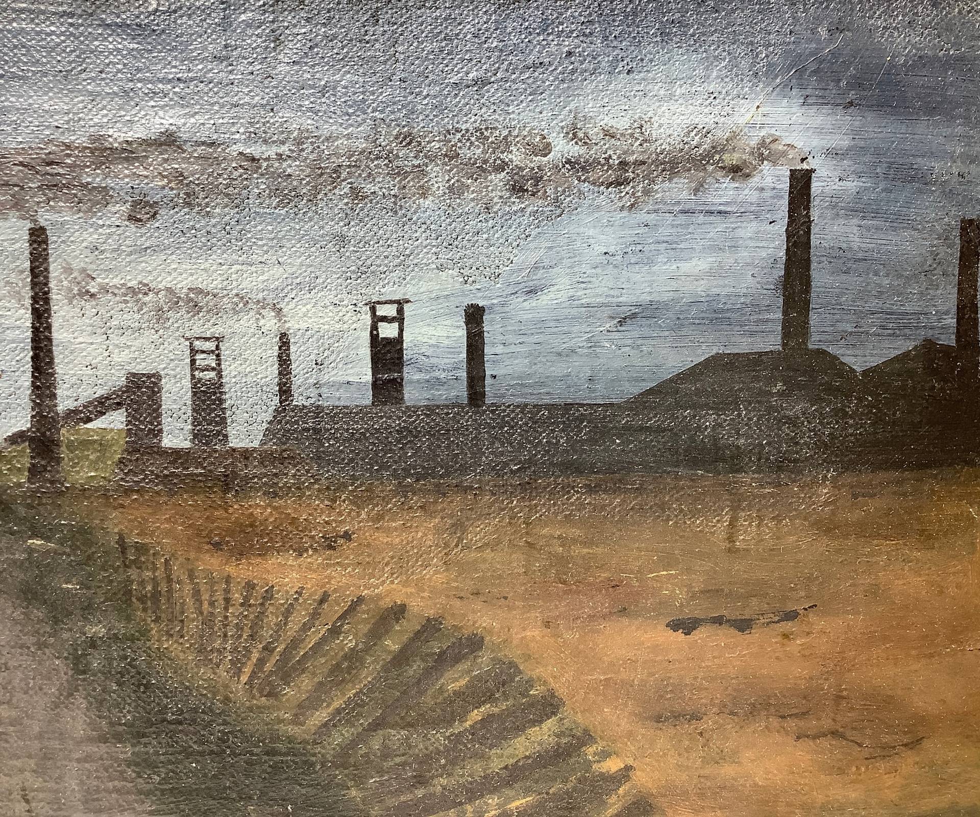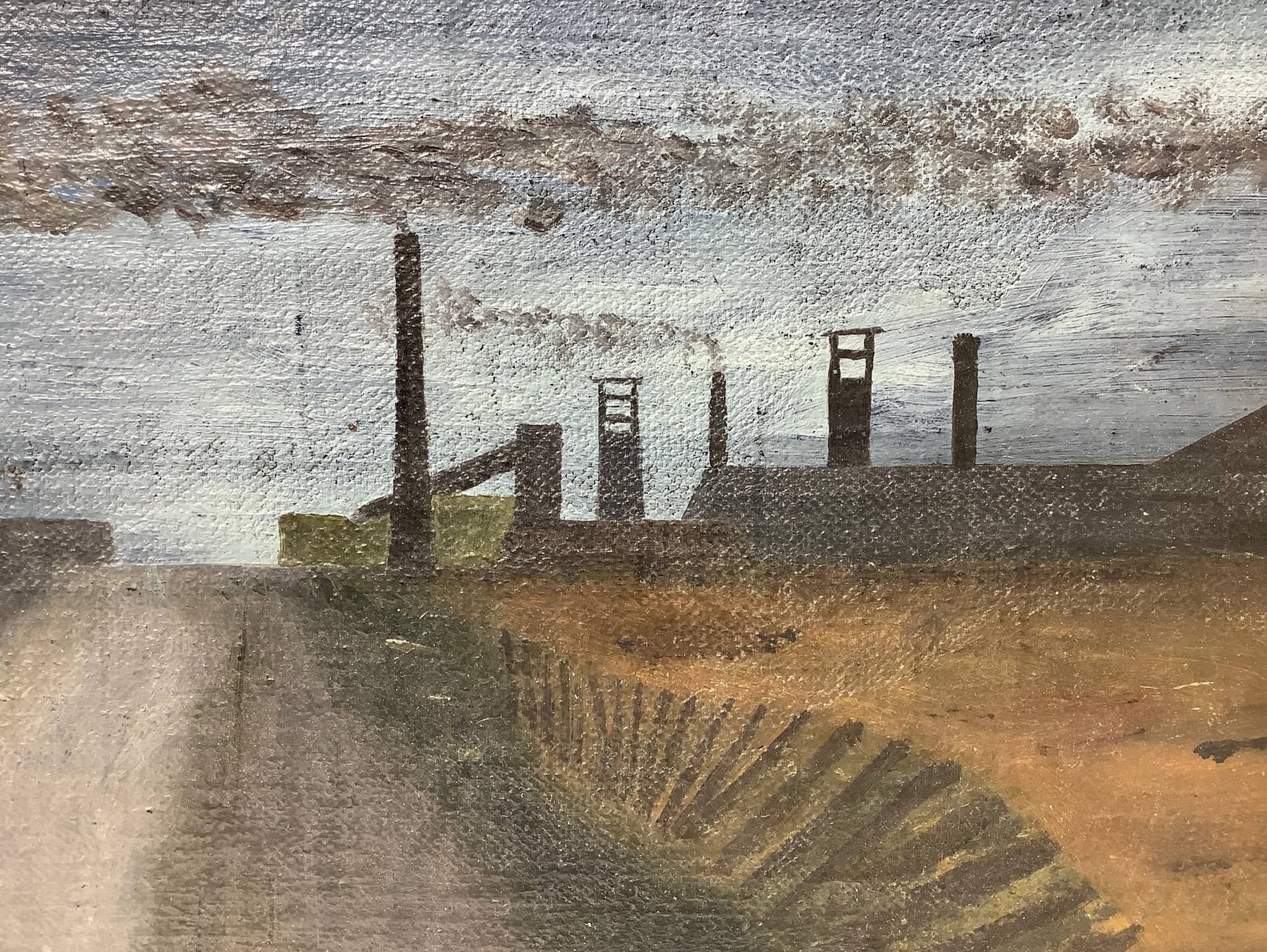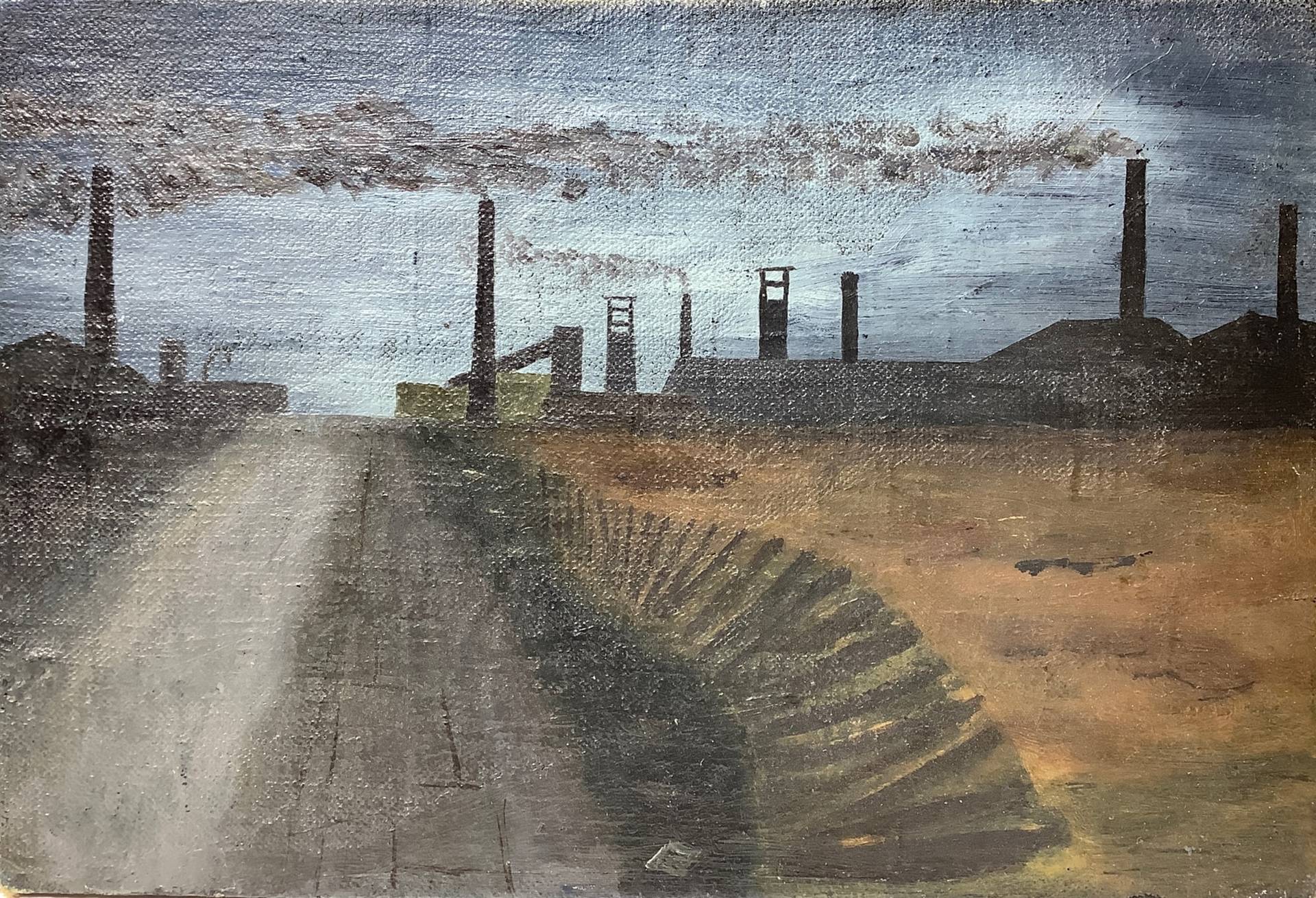 Paesaggio industriale cm 35x24 Olio su tela applicata su tavola Pittore italiano inizio del XX secolo.