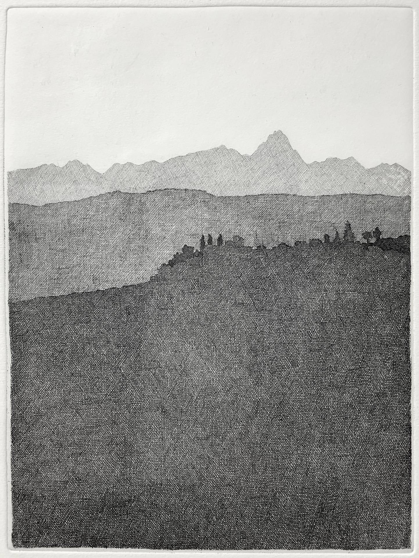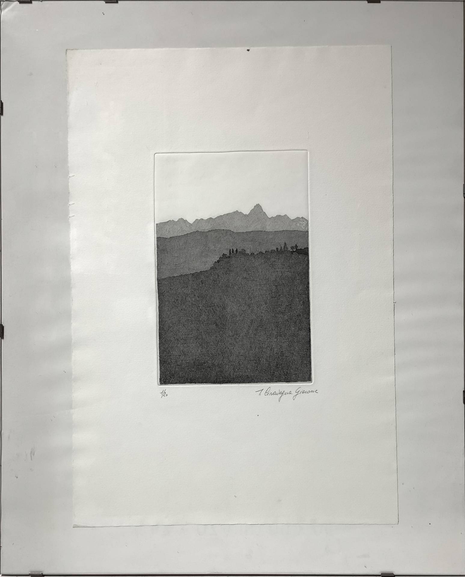 Paesaggio collinare e montano Mm 245x170,cm 60x50 Incisione in bianco e nero firmato in basso a destra T. Ciravegna Giacone.