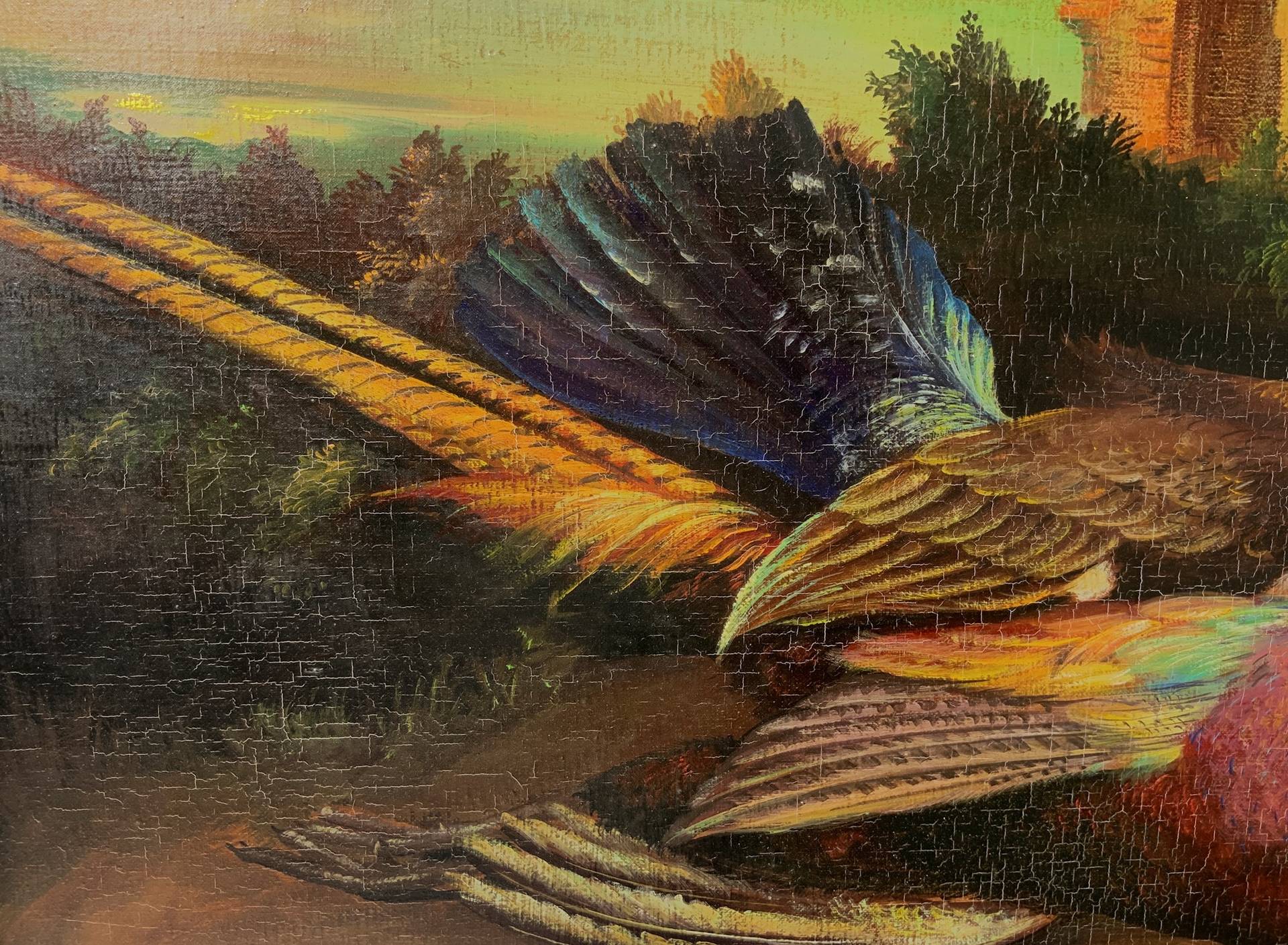 Natura morta e cacciagione, 1960 CM 50x70 , in cornice 67x87 Olio su tela Firma illegibile in basso a destra