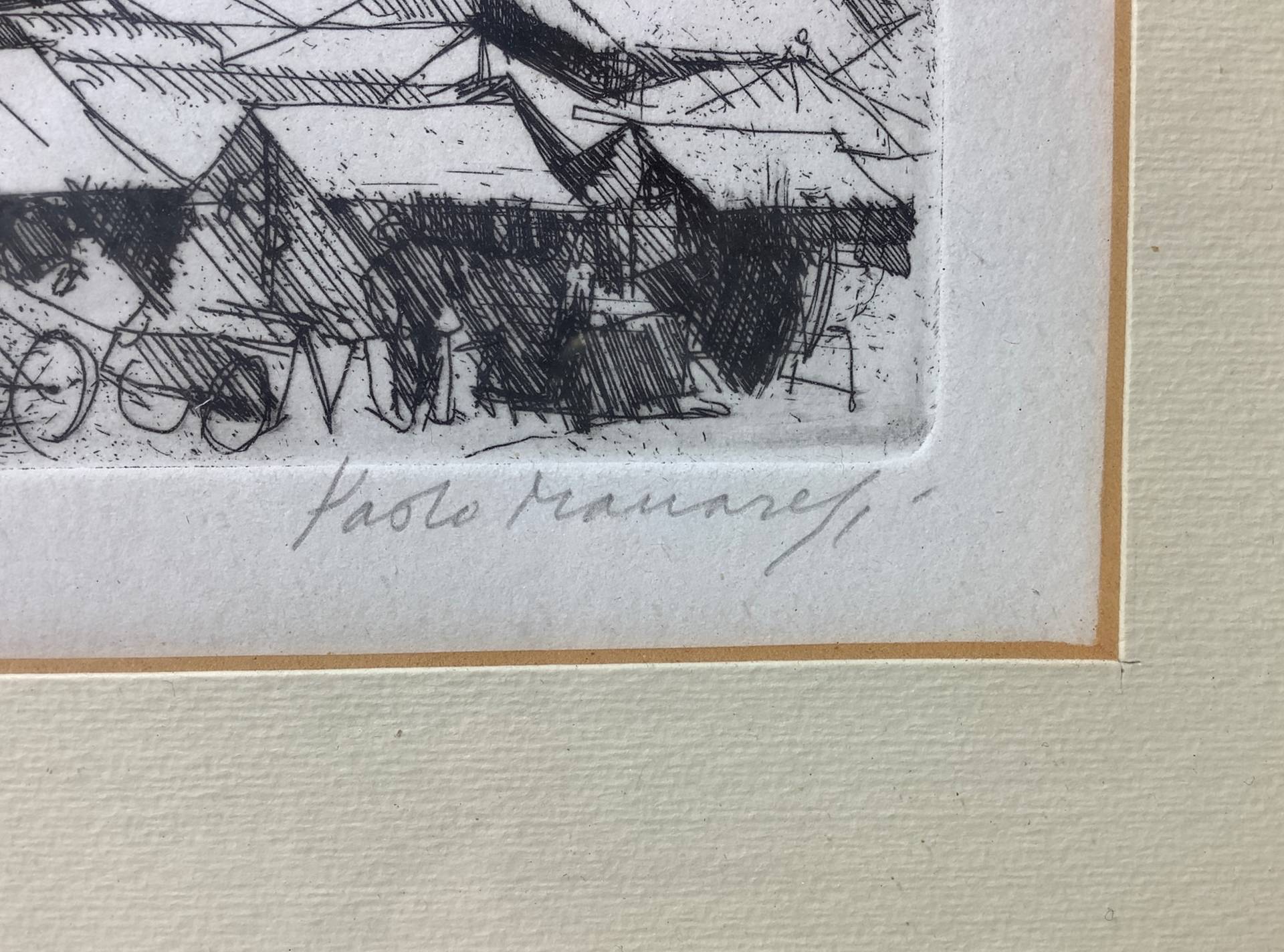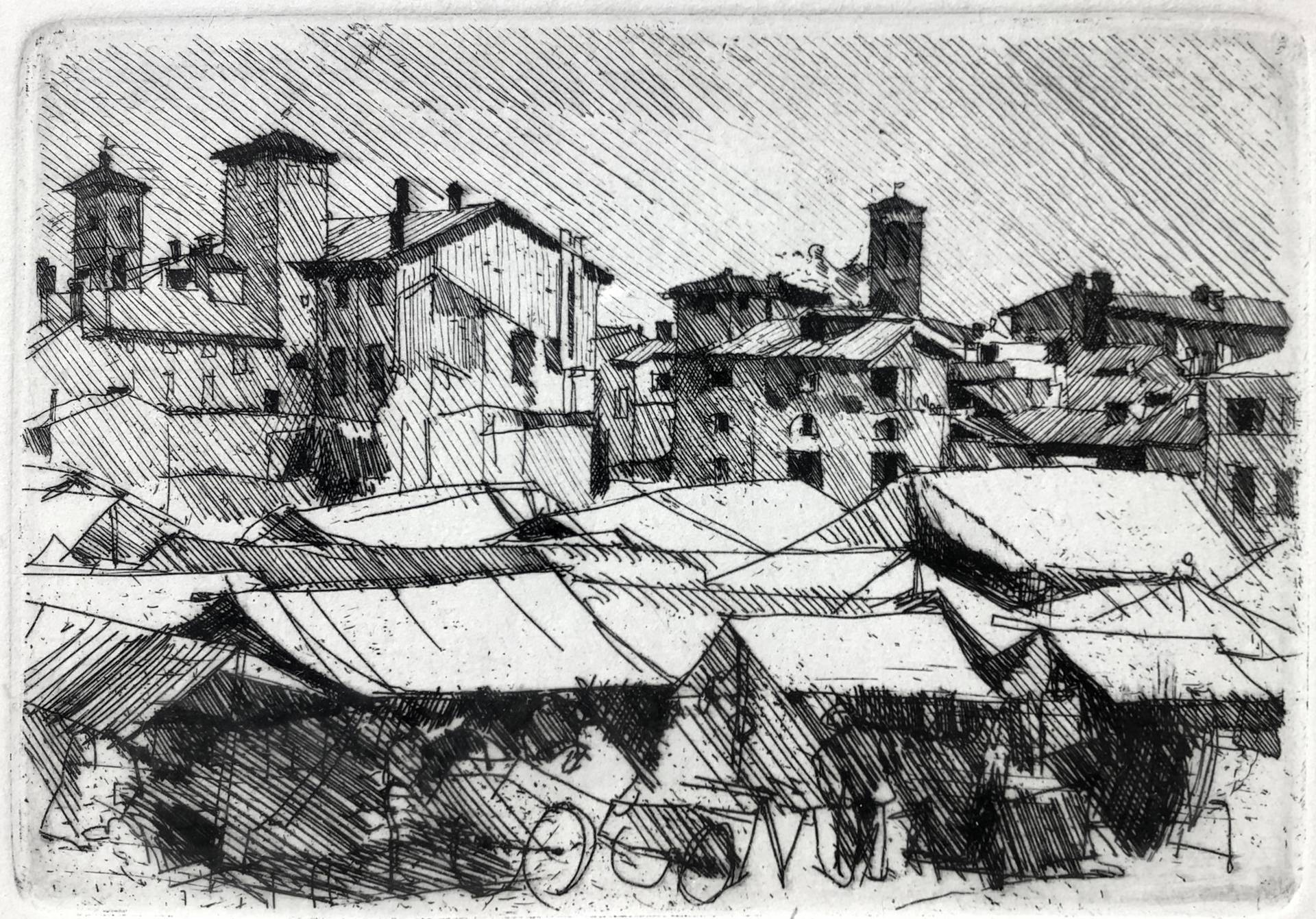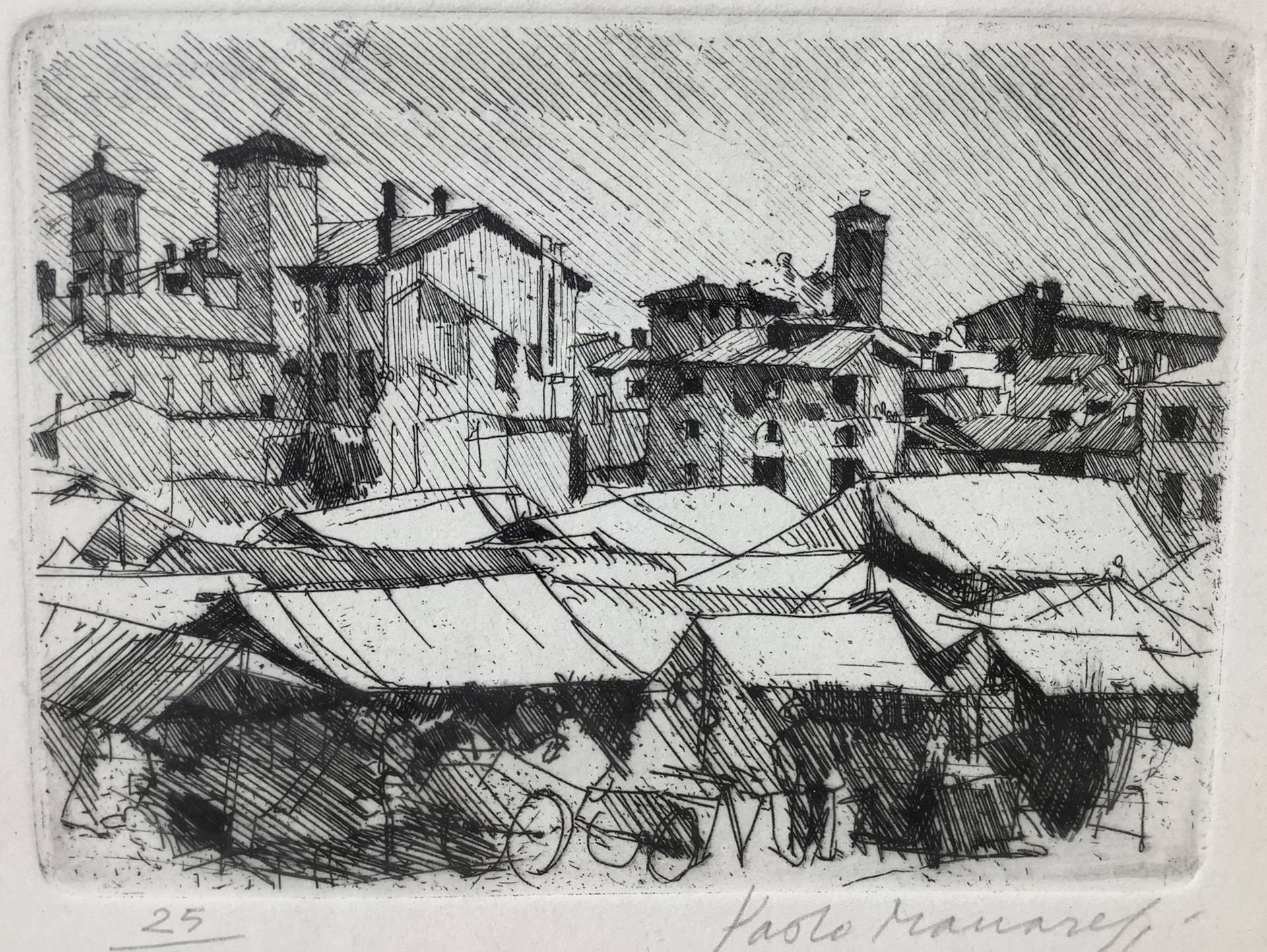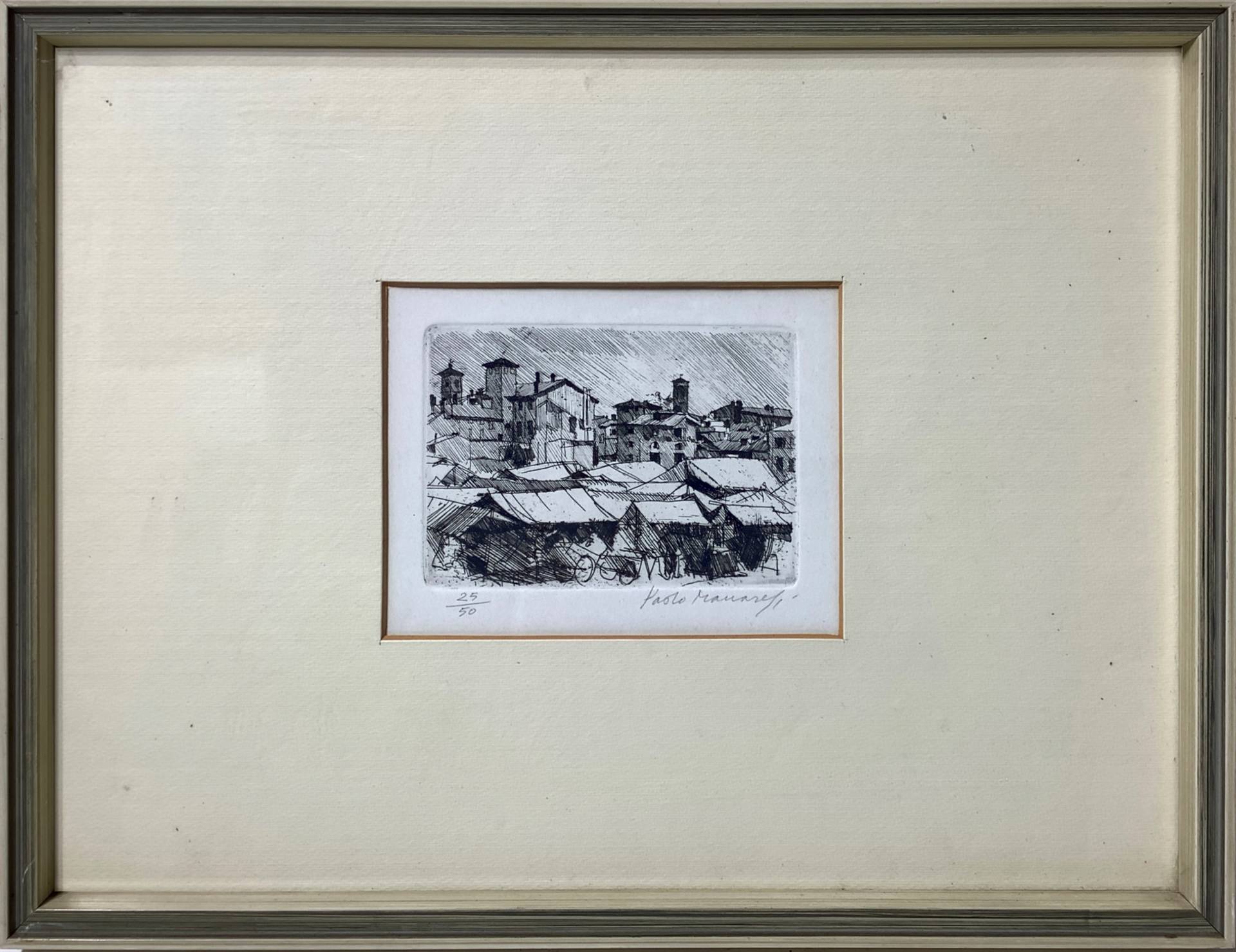 Paolo Manaresi (Bologna 23/09/1908-20/05/1991) - Mercato 1949 Mm 120x160, in cornice cm 33x43 Incisione a acquaforte firmato in basso a destra Paolo Manaresi (Bologna 1908-1991). N° 25/50