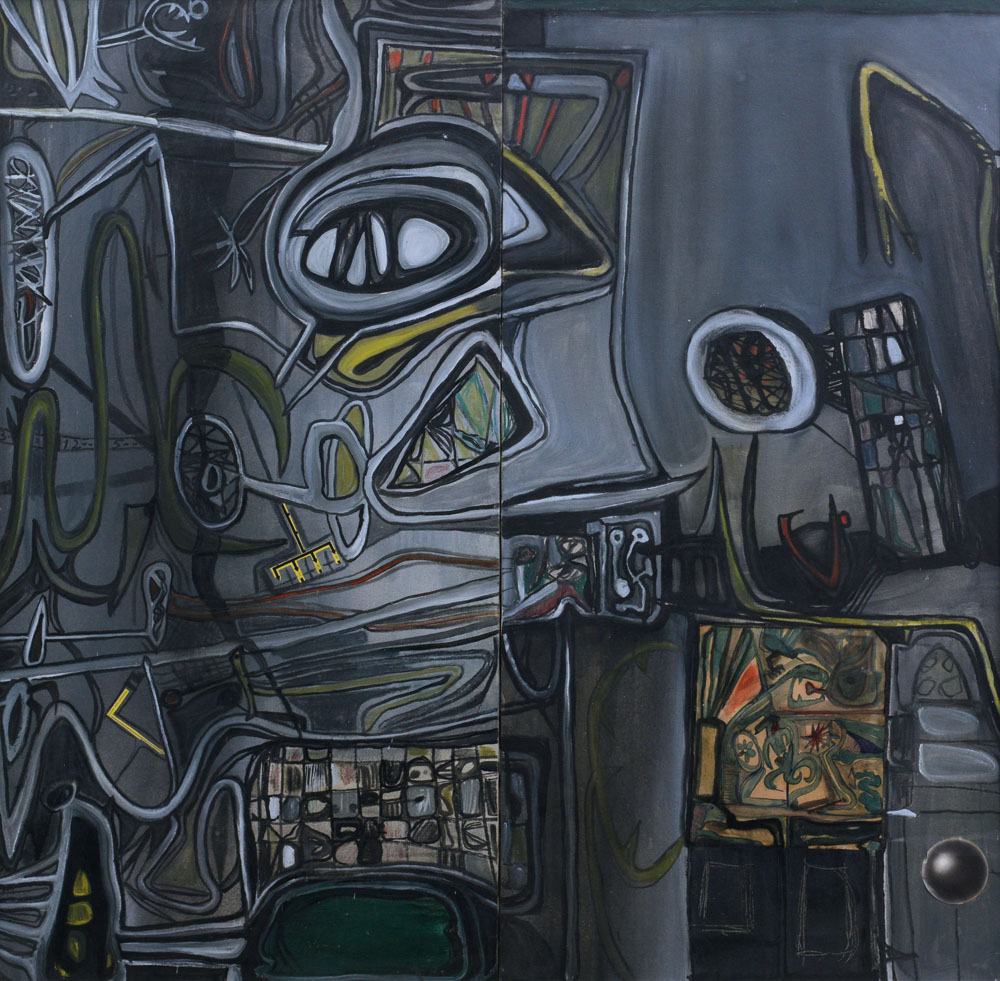 acrilico su due tele di cm 100x50, totale cm. 100x100, titolo e firma al retro su entrambe le tele, anno al retro della tela n.1