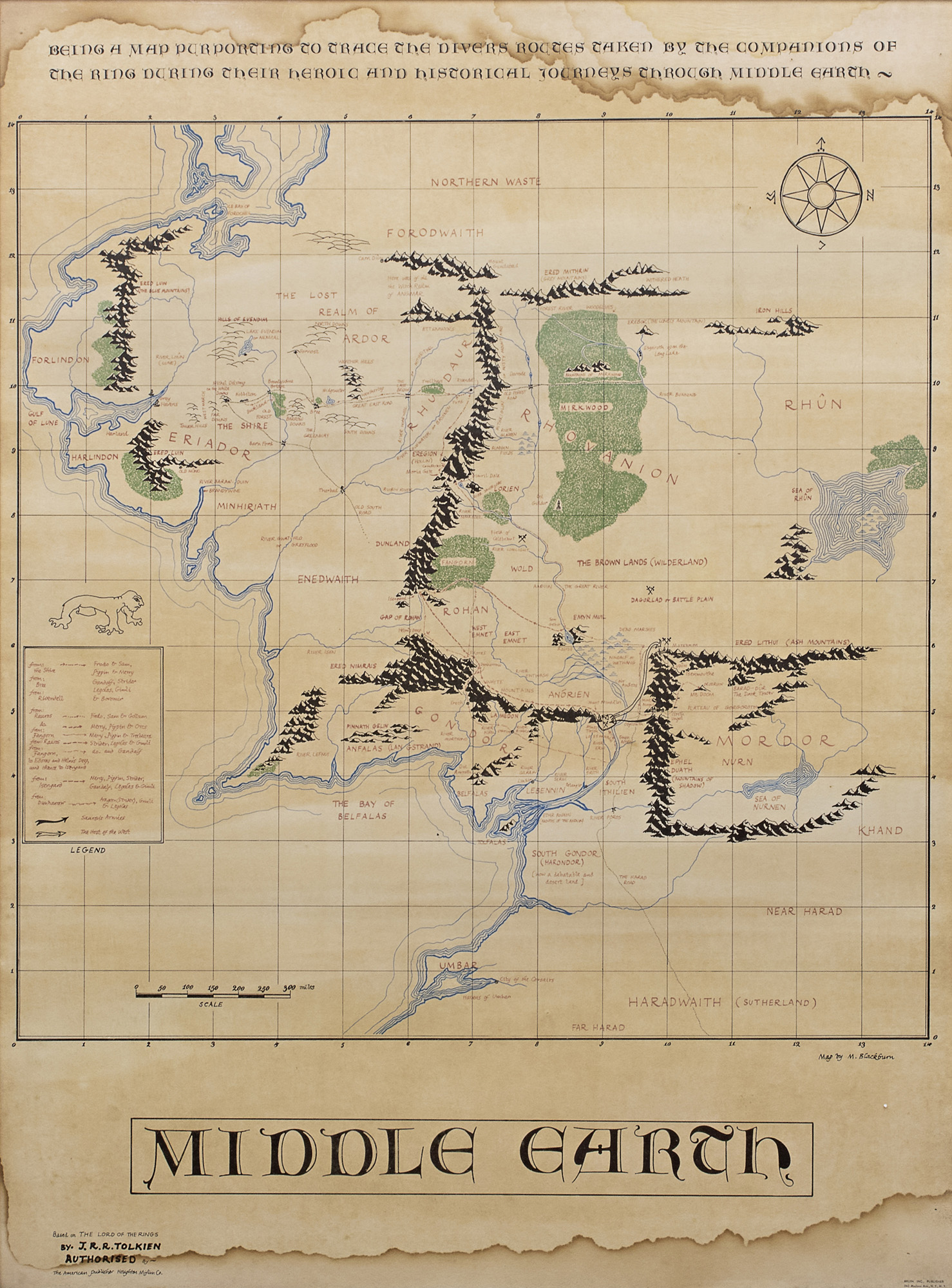 MAPPA DIPINTA DELLA TERRA DI MEZZO TOLKIEN M. BLACKBURN ORIGINALE 1966