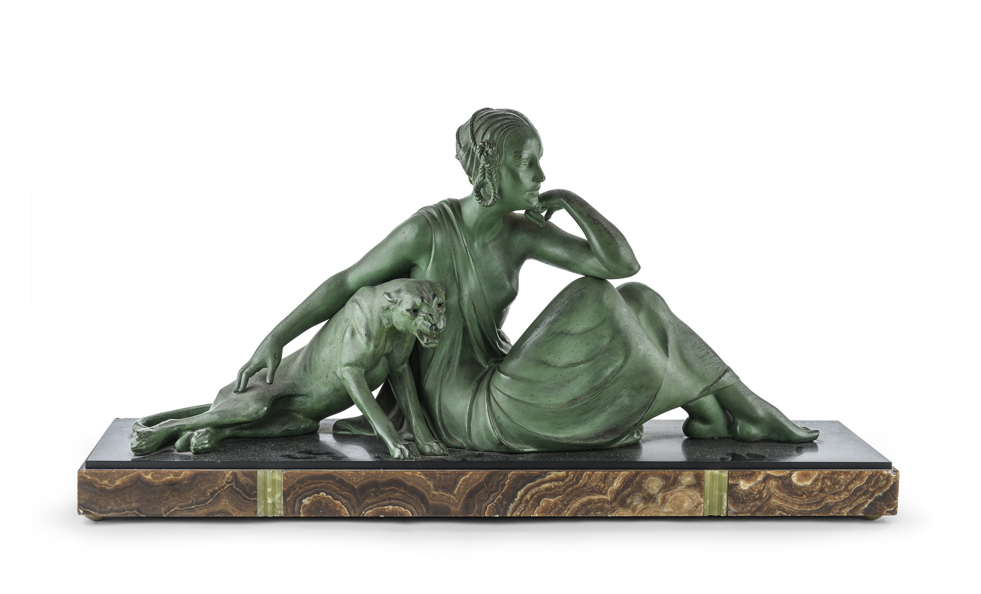 BRONZO DONNA CON PANTERA DI ARMAND GODARD