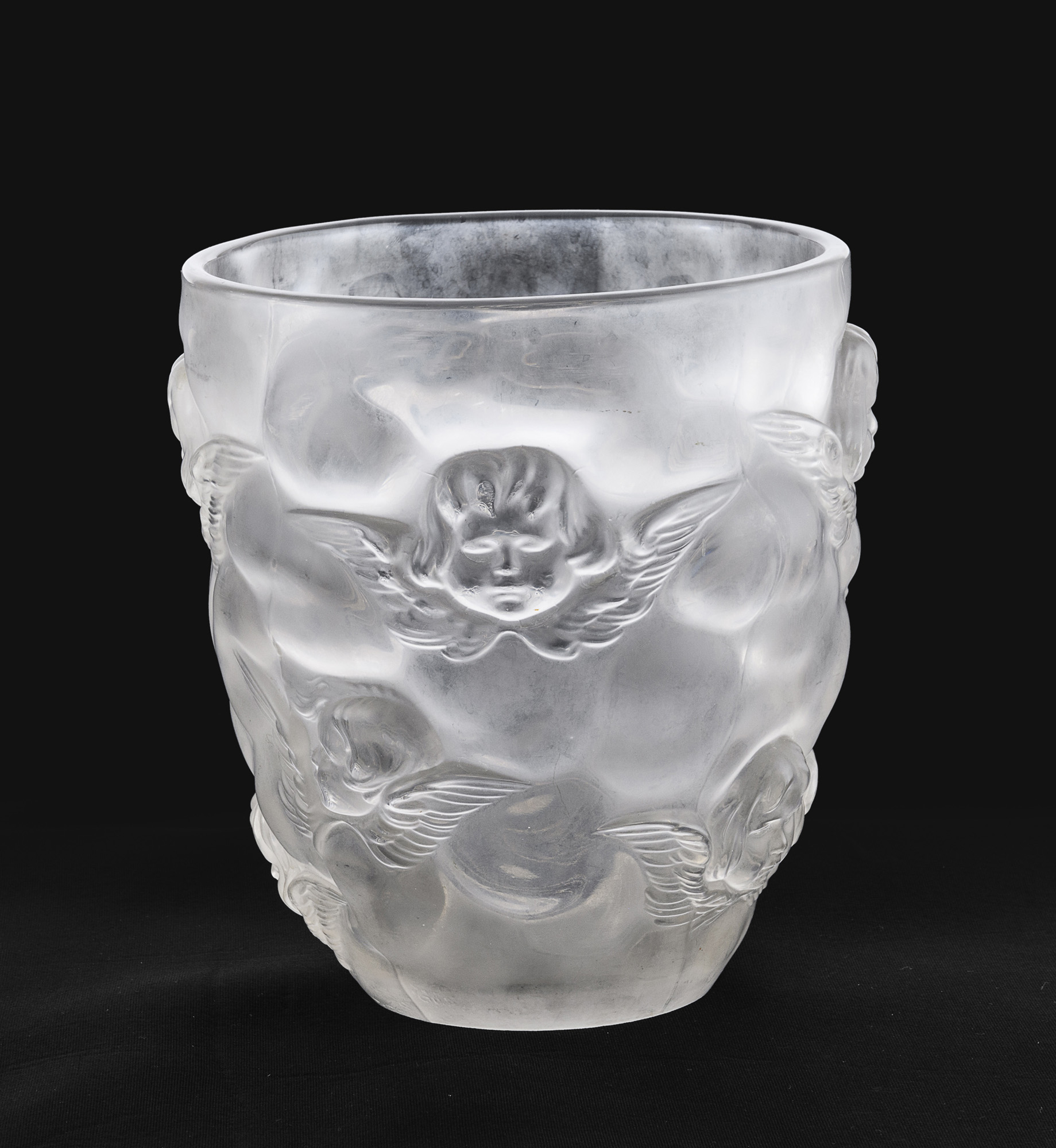 a fondo satinato con decori in rilievo a teste di cherubini.