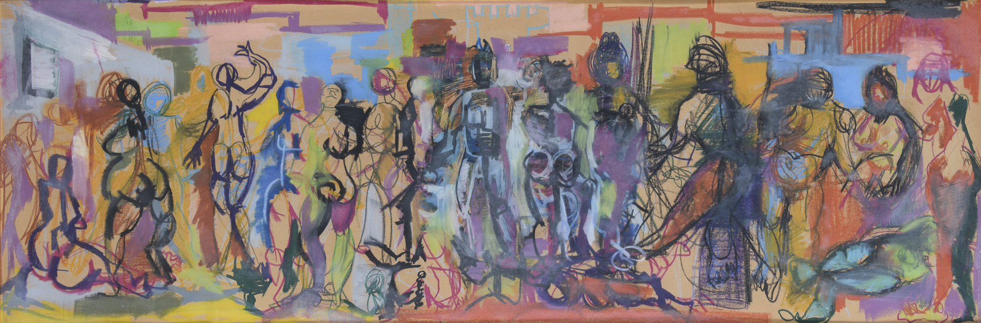 PASTELLO FOLLA IN STRADA, ANNI '40