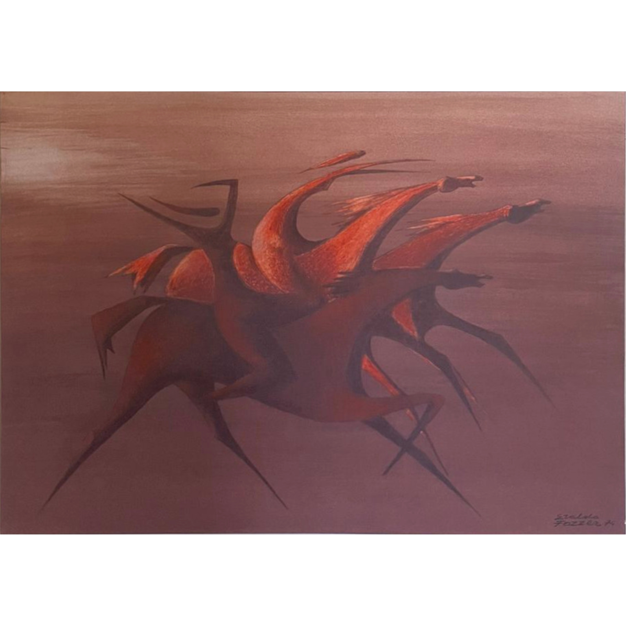 Lotto 10 | Eraldo Fozzer, cavalli rossi (1974), olio su tela, cm 50x70