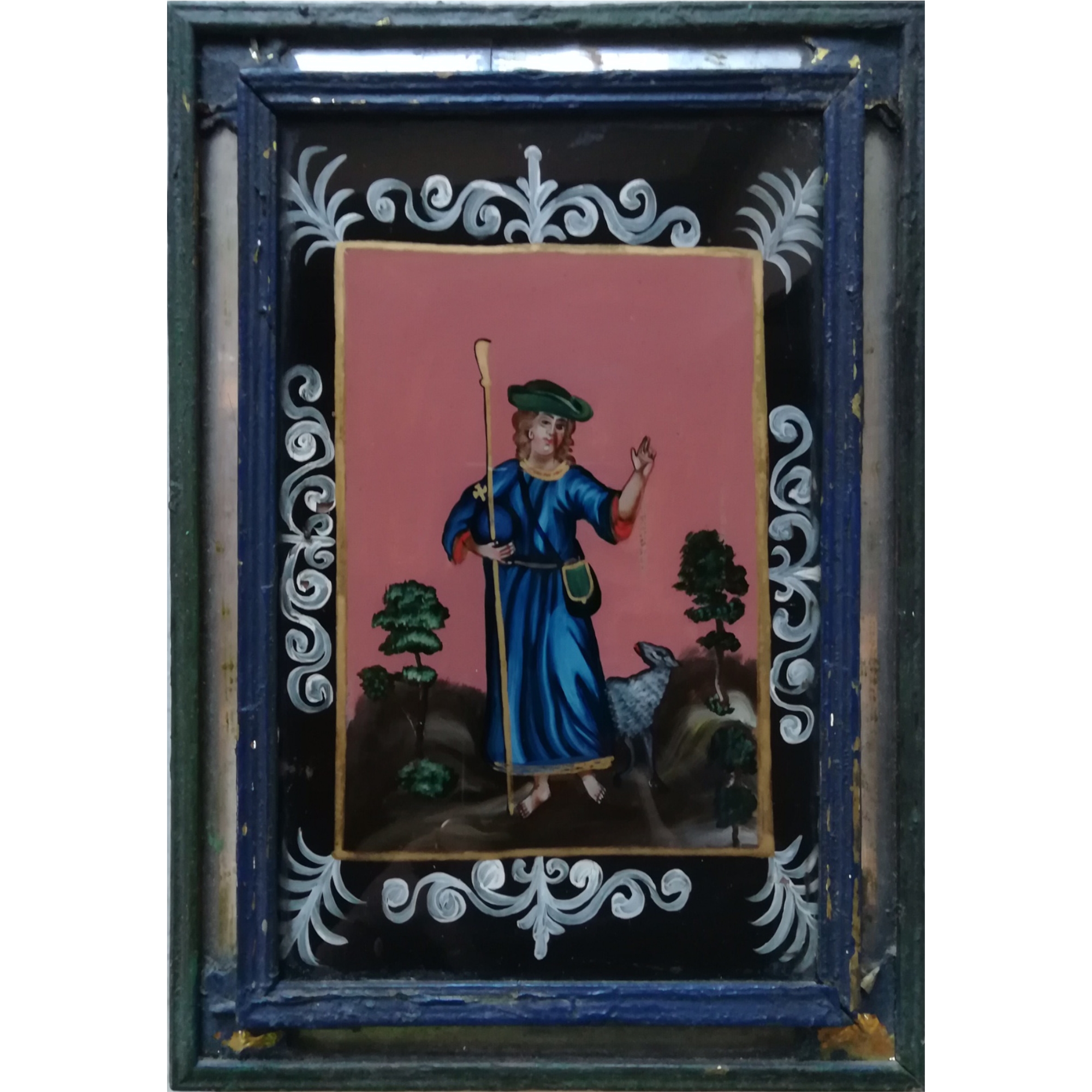 Bottega austriaca, Cristo come Buon Pastore, seconda metà del XVIII secolo, vetro dipinto, 17x23 cm.