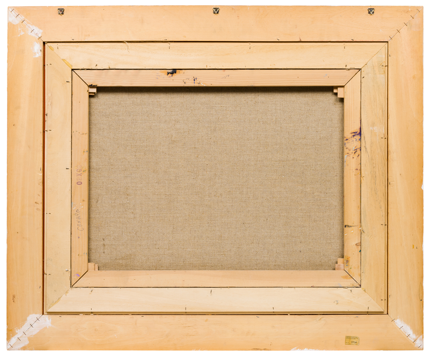 Altre iscrizioni: “Canapa” su telaio, al verso; altra scritta non leggibile su telaio (“de zou”?)