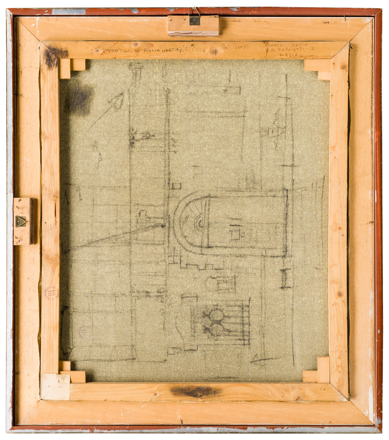 Elementi distintivi: sul telaio, timbro della Biblioteca pubblica e casa della cultura - Fondazione Marazza di Borgomanero ed etichetta con numero “23”; sul lato del telaio, etichetta della Banca Popolare di Intra con riferimenti di inventario