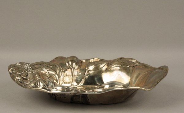 Lotto 346 | Cestino portacioccolatini in argento sbalzato con decori floreali, gr. 130...