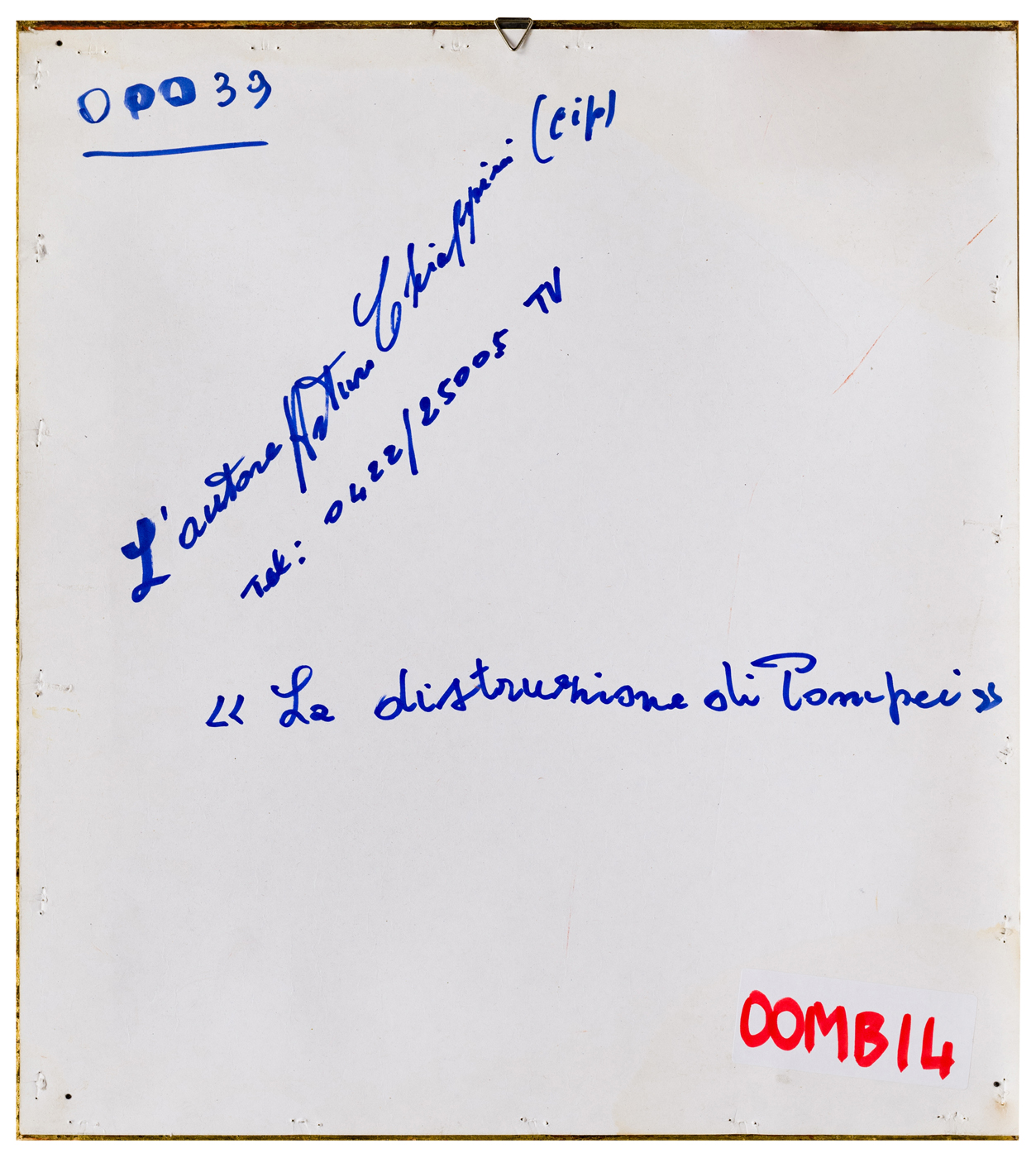 Altre iscrizioni: sul verso “L’autore Arturo Chiappini (CIP)”, “La distruzione di Pompei” e numero di telefono dell’artista