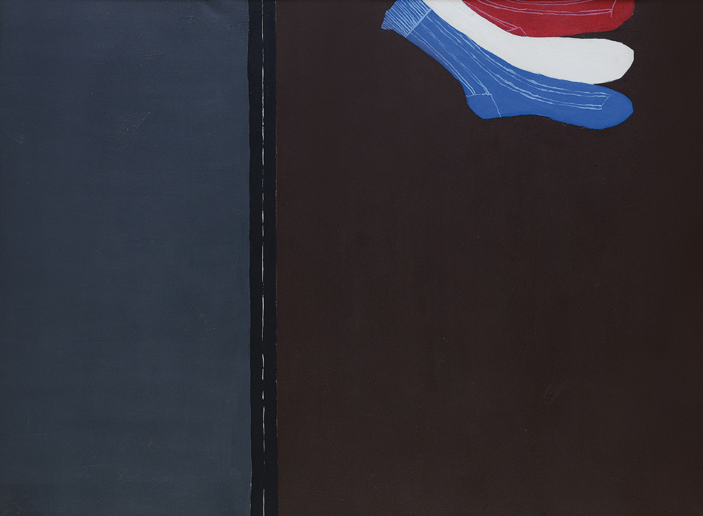 TITONE ANTONIO Vetrina con tre calze, 1965acrilici su tela cm. 80x110, firma,...