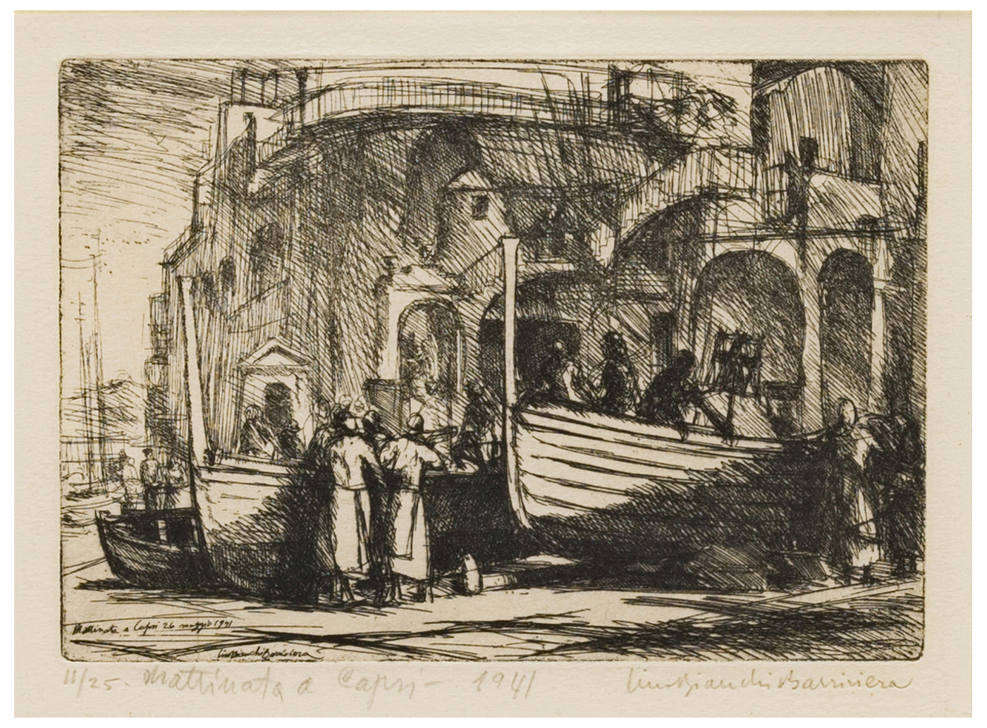 Altre iscrizioni: tiratura “11/25” al recto a matita e in lastra; “Mattinata a Capri” in lastra