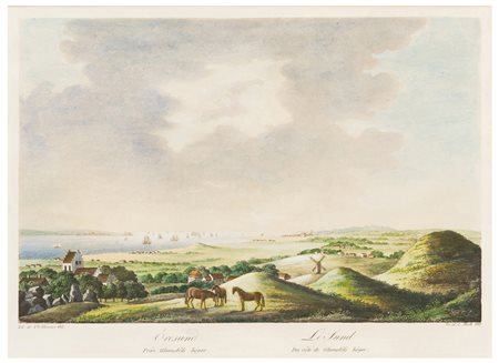 Altre iscrizioni: “Rit. af Ulr. Thersmer 1818”, “Oresund. Från Glumstöf högar. Le Sund. Sur côté de Glumstöf högar” in lastra