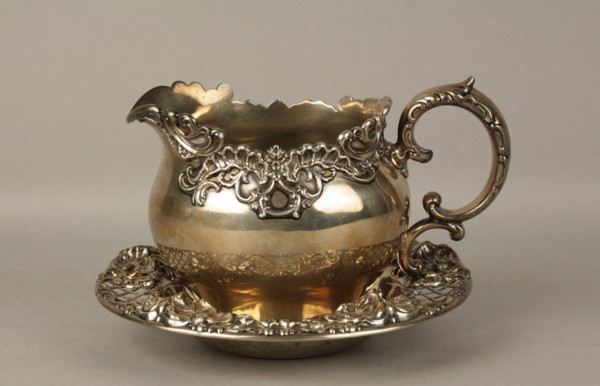 Lotto 347 | Due oggetti in argento di cui una lattiera e uno svuotatasche, peso...