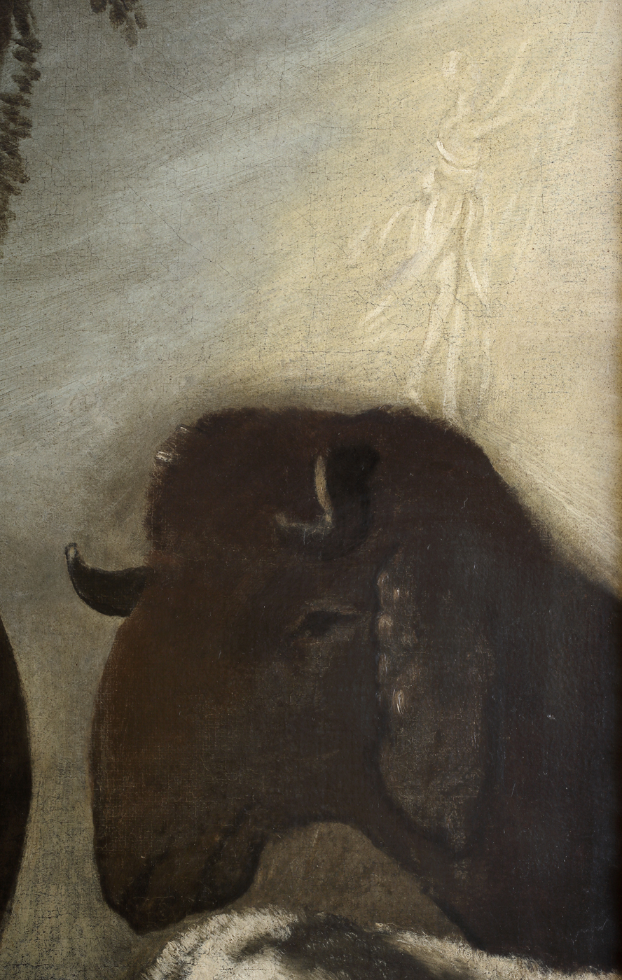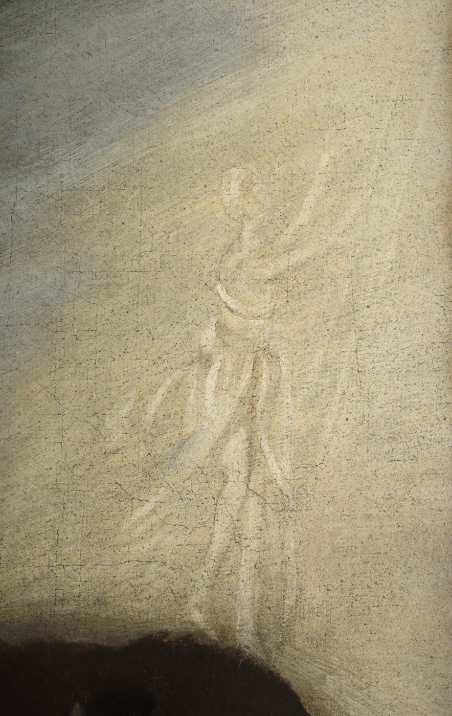 In linea generale, la tela in esame presenta, rispetto al modello, dimensioni analoghe (salvo la riduzione superiore derivante forse da resezione della tela in fase di restauro), la precisa riproposizione delle forme e la ricercata semplificazione dei dettagli di contro ad una compressione cromatica e della profondità (quest'ultima dovuta, tuttavia, anche al naturale scurimento dei marroni).
