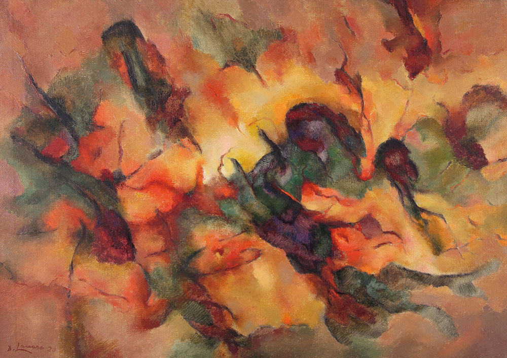 olio su tela di juta cm. 70x100, firma e anno in basso a sinistra, firma, titolo, anno ed etichetta della Galleria Annunciata (MI) al retro.