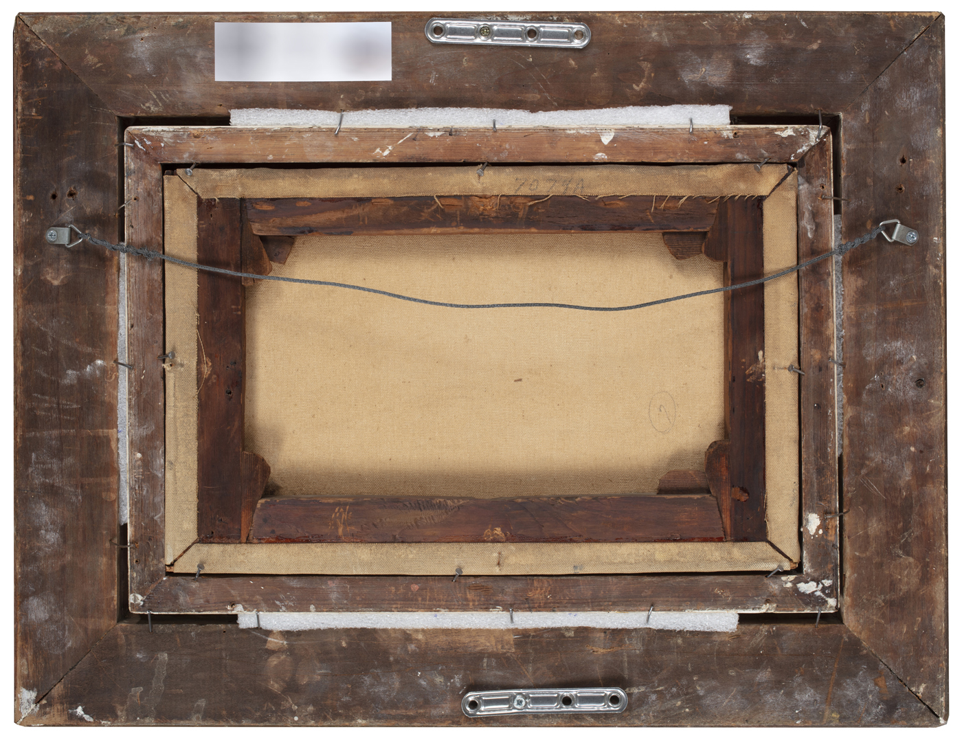 Elementi distintivi: sulla cornice, a matita, numero di inventario "7074A", forse apposto negli Stati Uniti; sul retro della cornice, segni di passaggi d'asta a gesso bianco