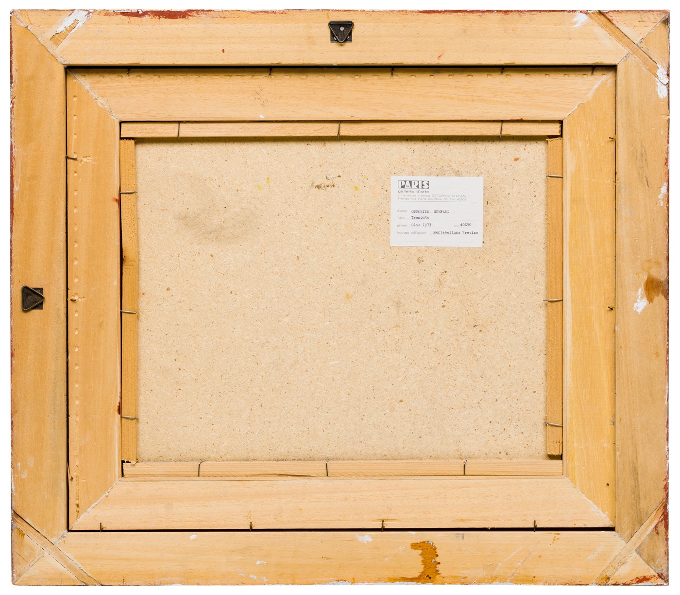 Elementi distintivi: sul verso, etichetta della Galleria d’Arte Paris di Treviso con informazioni relative all’opera e data