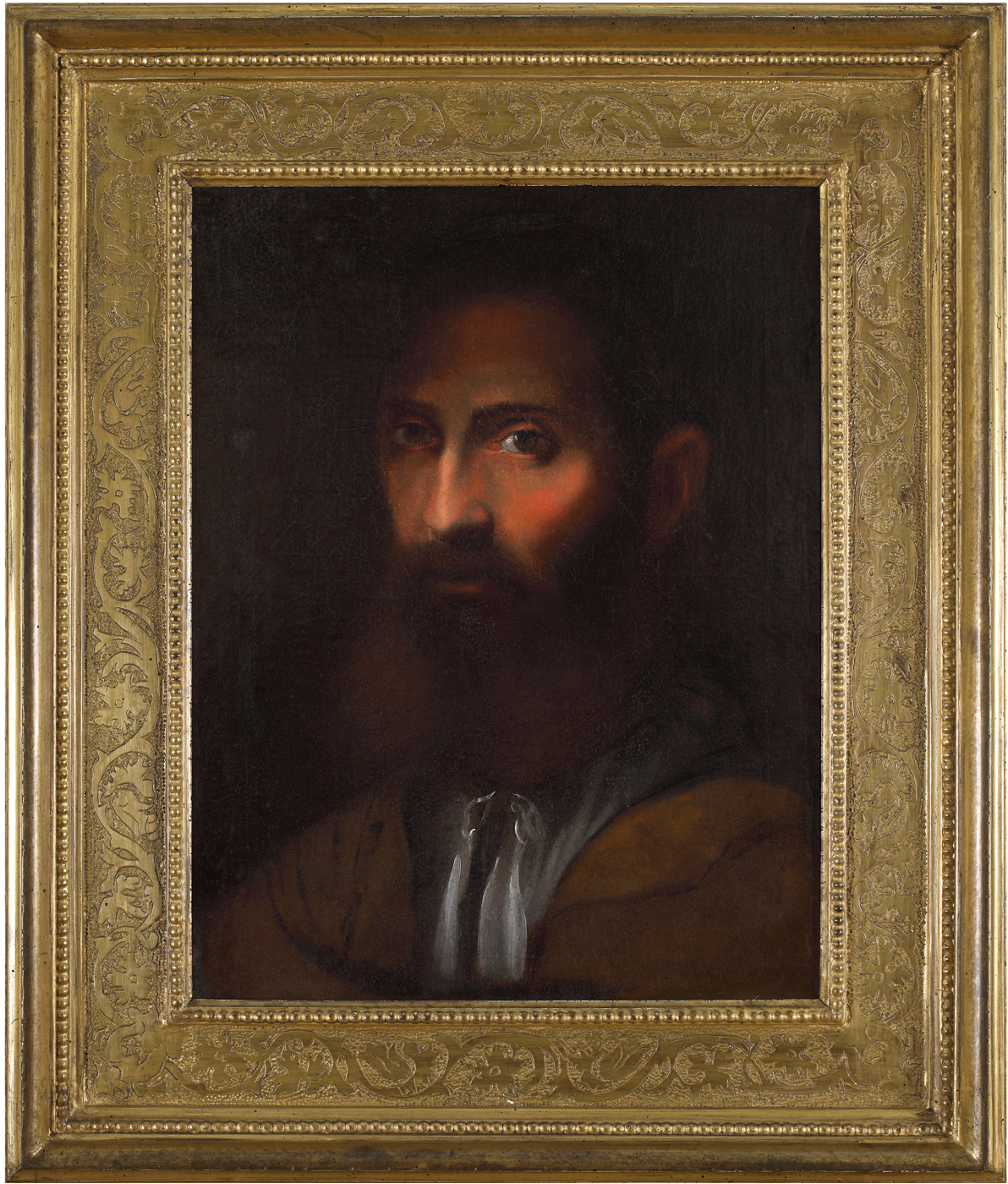 Per l'opera in scheda è stata suggerita una affinità con i dipinti di Girolamo da Carpi della metà del Cinquecento, per esempio il "Ritratto virile" (olio su tela, 76x95,5 cm), datato 1545-1549, proveniente dalla collezione Sacchetti e conservato presso la Pinacoteca capitolina (Galleria Cini, inv. PC 206).