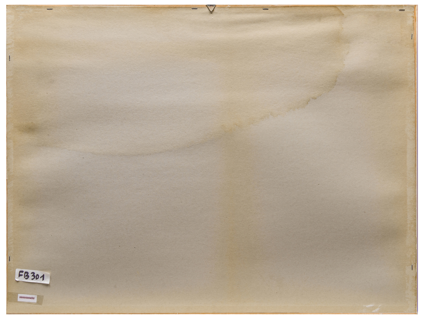 Il lavoro del 1978 fa parte della serie “Interspazi” e il lavoro del 1980 fa parte della serie “Dimora delle cose”. Entrambi i lavori sono Senza titolo: infatti, tutte le carte e disegni di Uncini non avevano titolo, a differenza delle opere scultoree. Il titolo sull’etichetta “Composizione astratta" è probabilmente posticcio. Rare, nella produzione di Uncini, le opere disegnate recto verso.