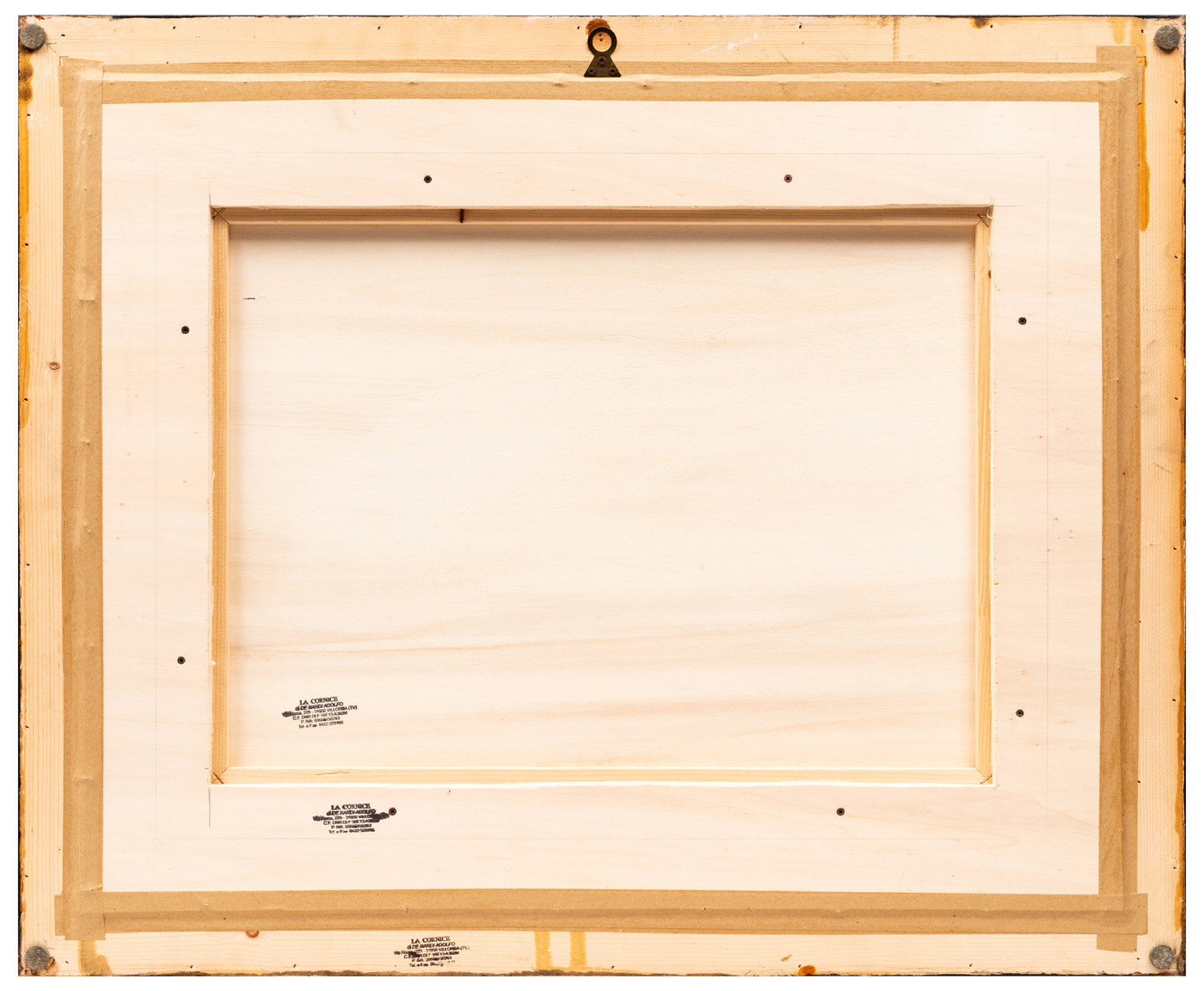 Elementi distintivi: due timbri del corniciaio “La Cornice” di Villorba (Treviso).