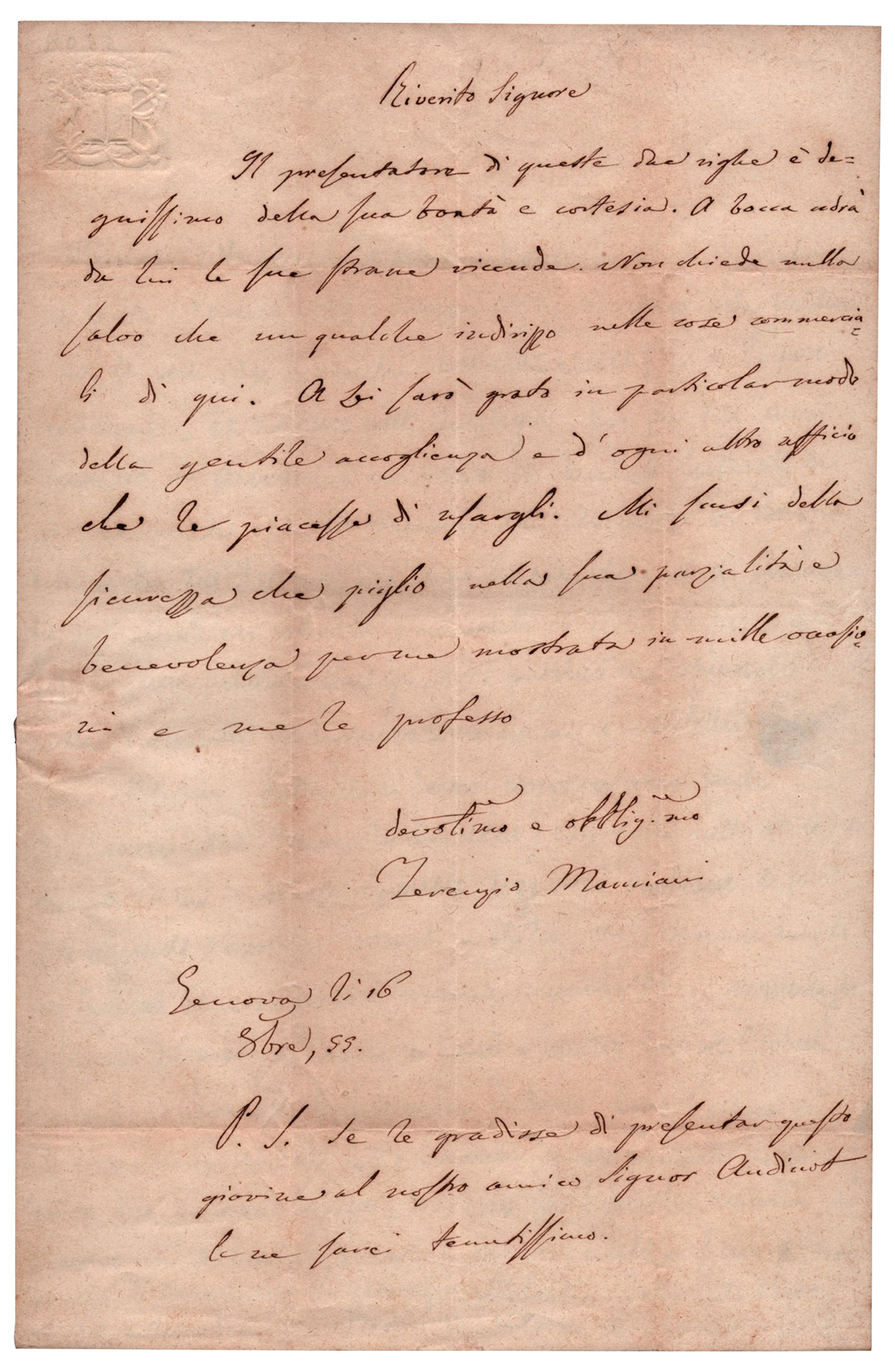 Firma/data: Genova li 16 9bre 1855