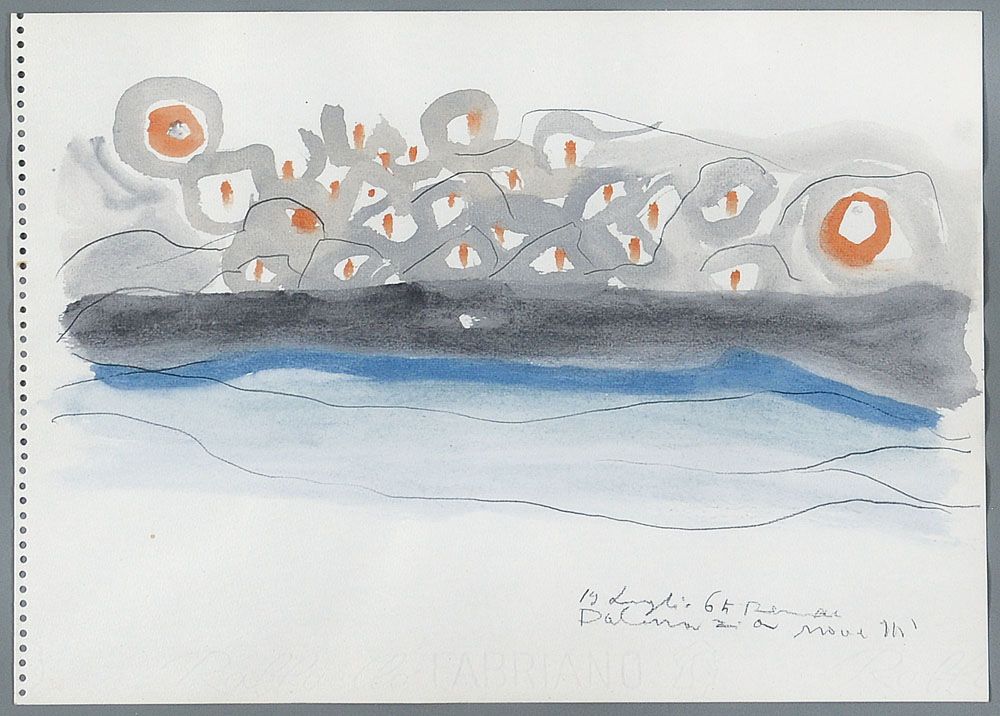 tecnica mista su carta Fabriano cm. 23x32, firma, titolo e anno in basso a destra, opera registrata presso l'Archivio Gastone Novelli (Roma) come da dichiarazione su foto.