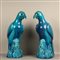 Coppia di sculture in porcellana turchese raff. ''PAPPAGALLI''. Cina. Inizi...