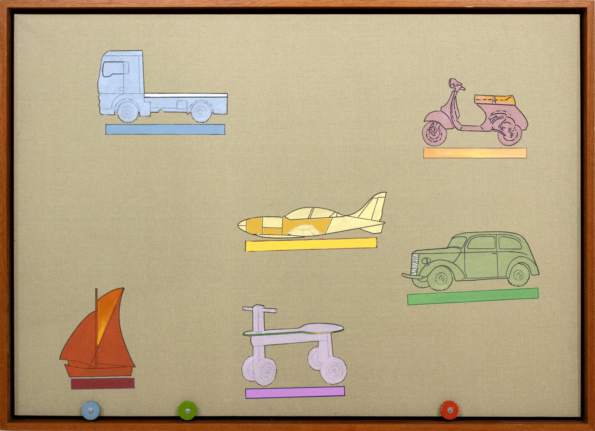 Renato Mambor Sulla stessa via, 2010 olio e smalto e applicazioni su tela...