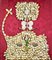 assemblage di conchiglie e medaglia su seta damascata applicata su tavola, cm 80x70; es. 72/100