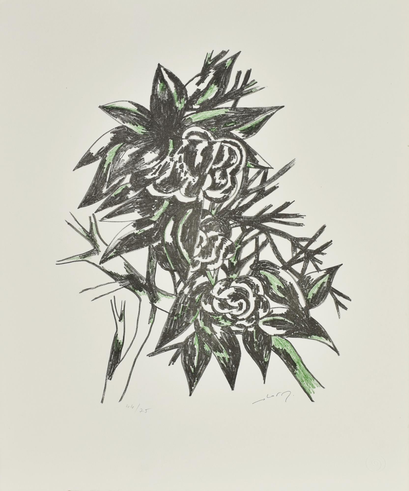 Gianni Dova RAMO IN FIORE litografia, cm 54x40,5; es. 44/75 firma, tiratura e...