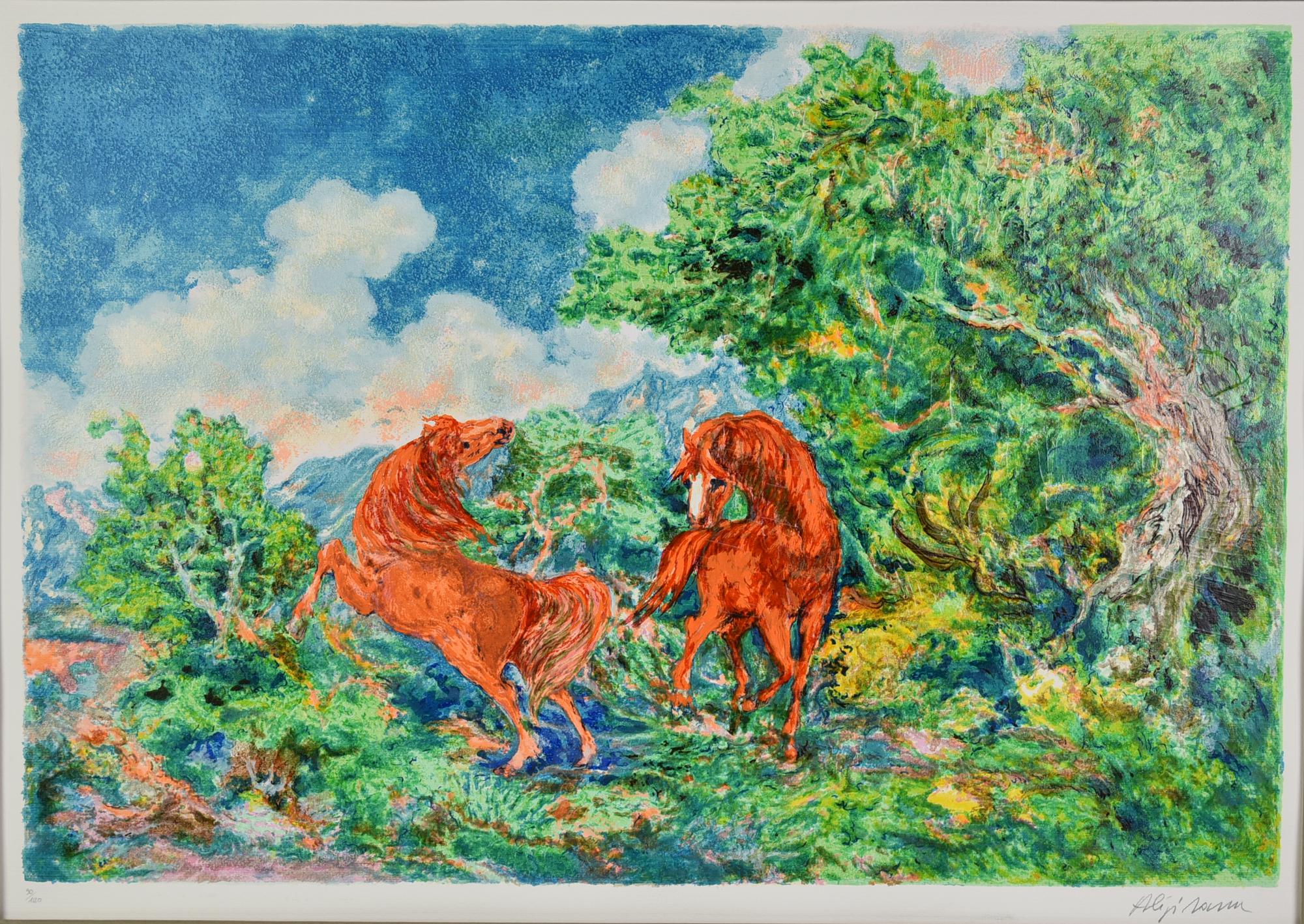 Aligi Sassu SENZA TITOLO serigrafia, cm 64,5x87; es. 90/120 firma, tiratura e...