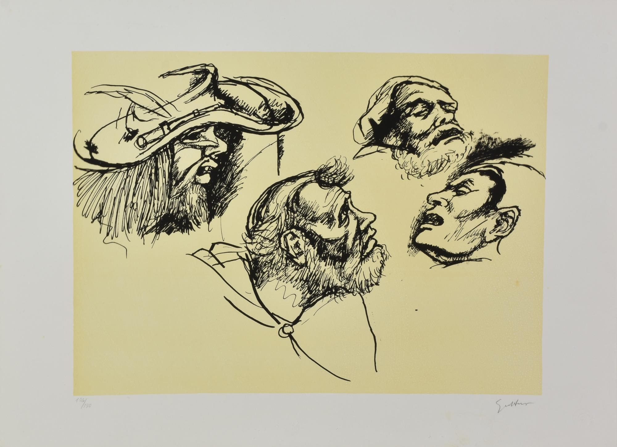 Renato Guttuso STUDIO DI VOLTI litografia, cm 45x60; es. 104/150 firma e...